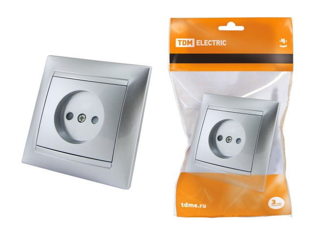 Розетка TDM cкрытой установки, 10А с защитными шторками, серый металлик, "Лама", 0210 *10