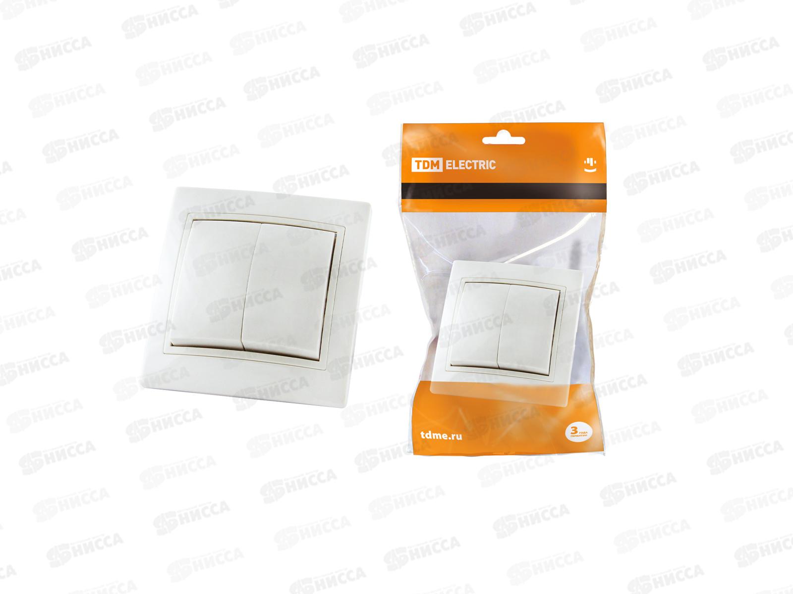 Выключатель TDM 2-клавишный 10А белый Таймыр бакелит, 0502