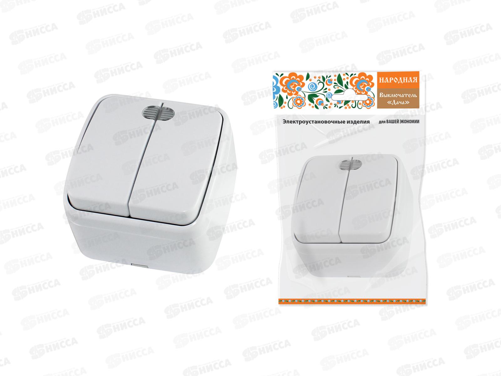 Выключатель 2-клавиши открытой установки с подсветкой IP20 10А, белый "Дача" Народная 0004