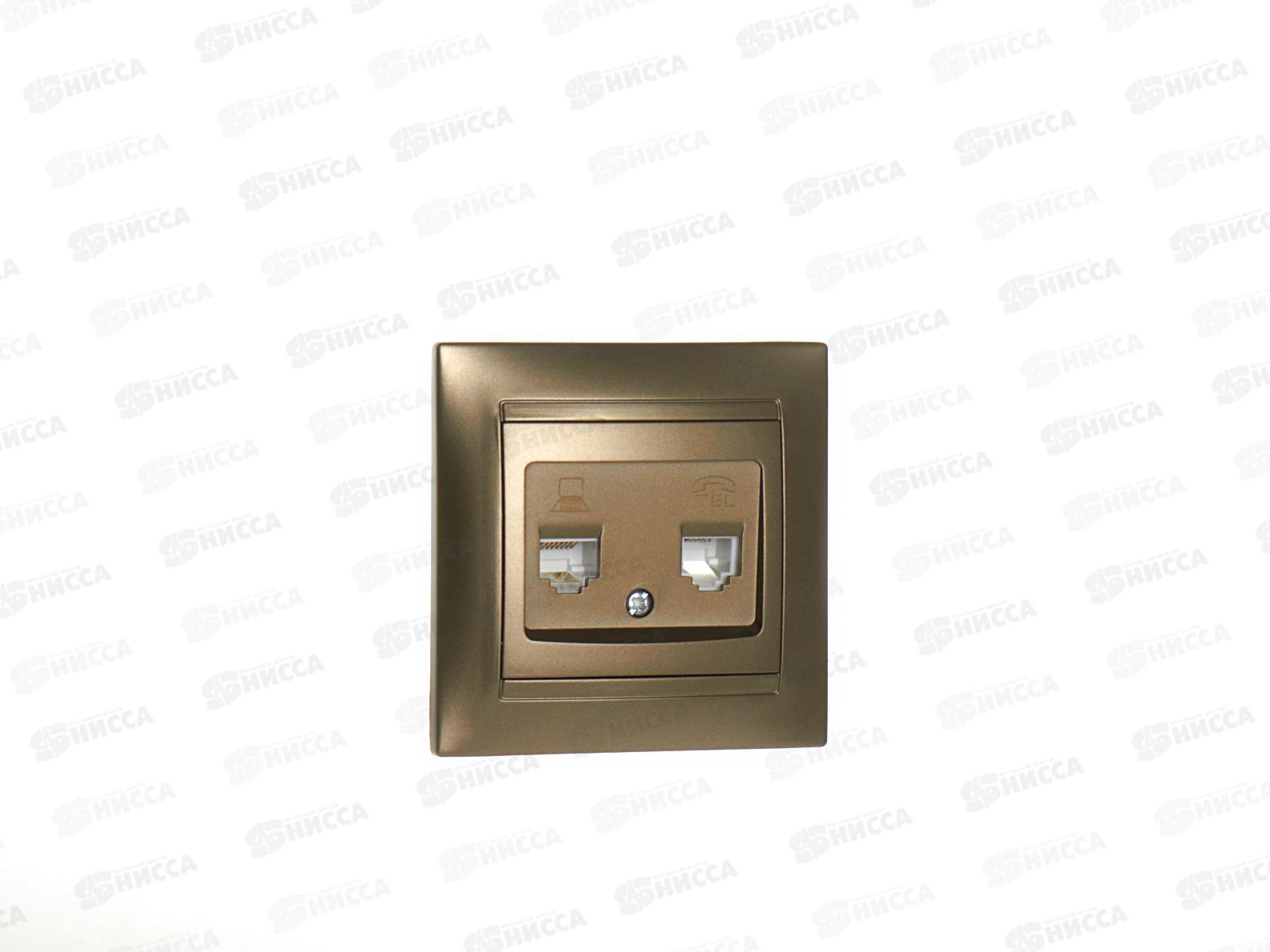 • Розетка TDM телефонная RJ11+компьютерная RJ45 бронза "Лама", 0719 *10