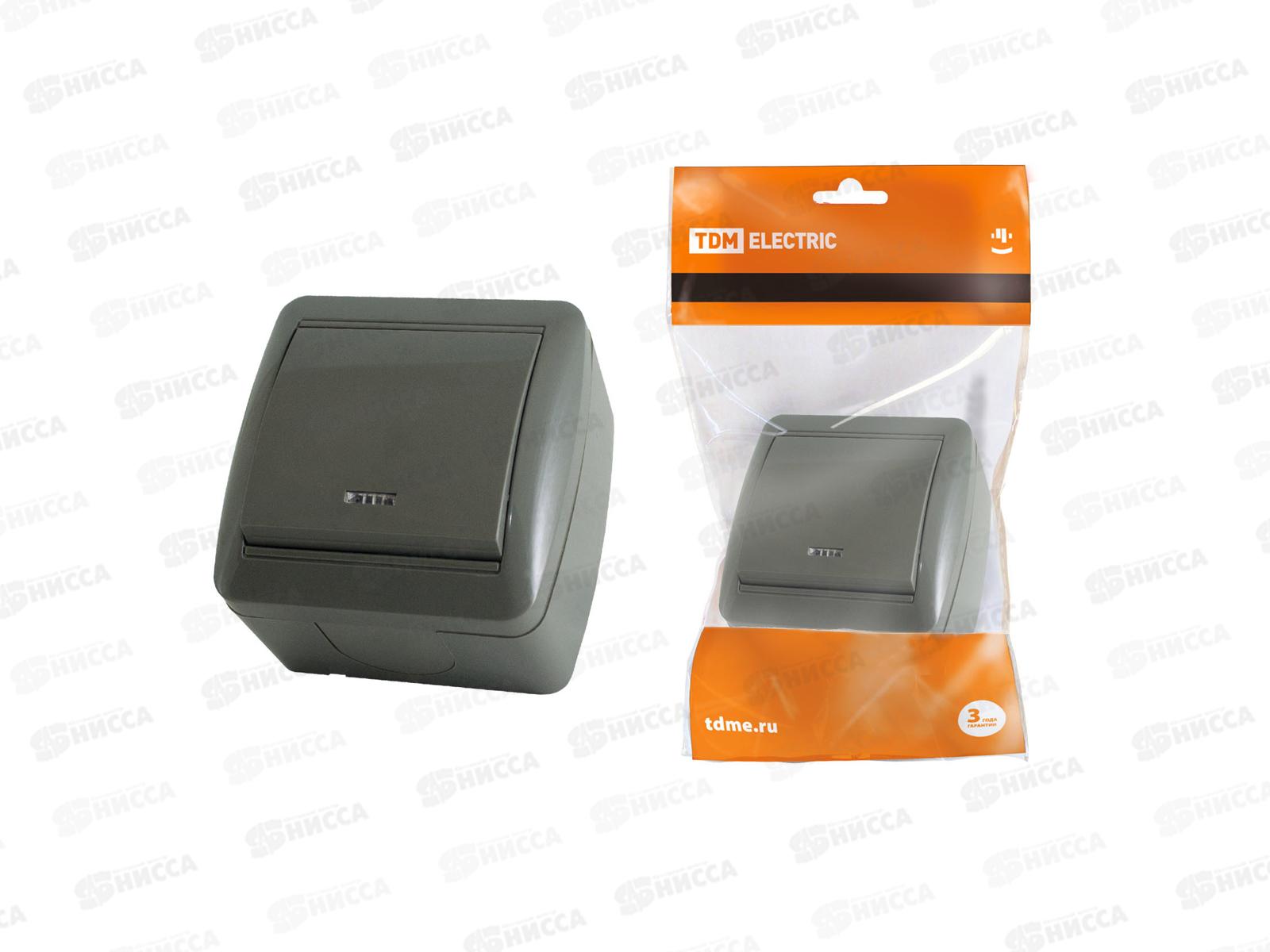 Выключатель TDM 1-клавиша открытая установка, подсветка., IP44 10А серый, "Селигер", 0103 *10