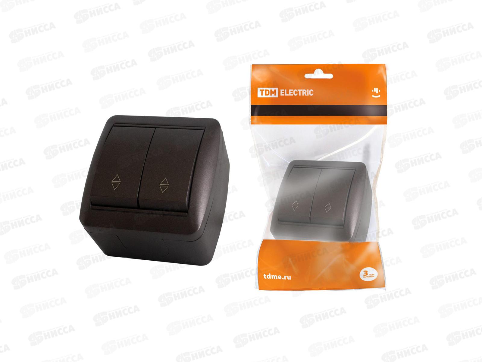 Выключатель TDM на 2 направления 2 клавиши, открытая установка 10А шоколад, Селигер,0212