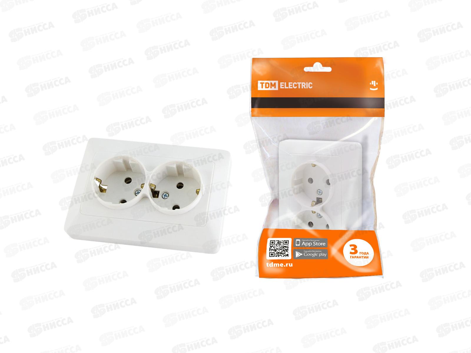 Розетка TDM двойная скрытая установка, защитные шторки, заземляющие контактыю, 16А белый "Ильмень", 0016