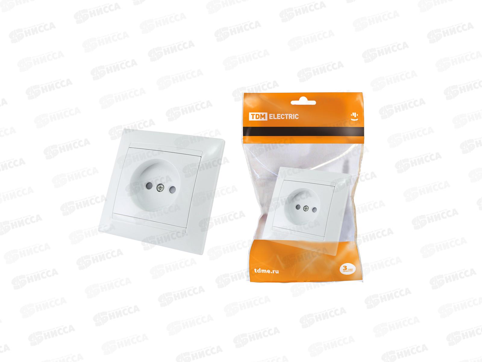 Розетка TDM 10А 250В с защитной шторкой белая "Лама", 0010