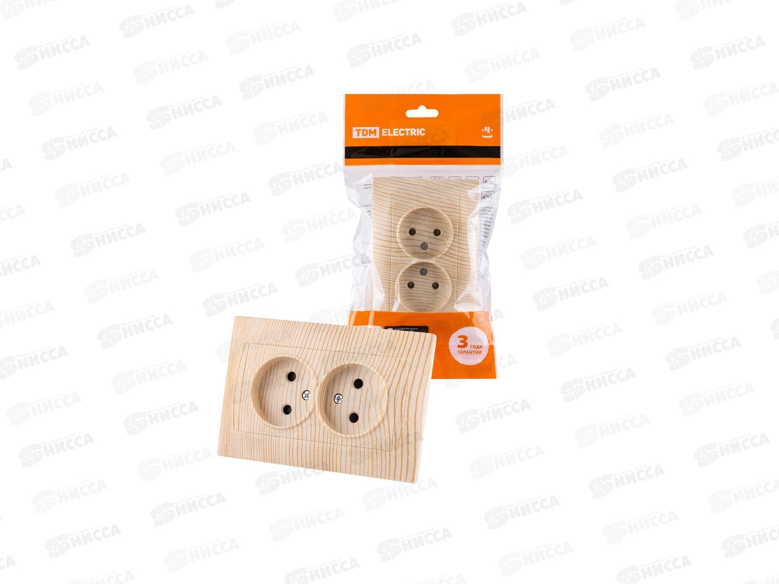 Розетка TDM двойная 10А 250В с защитной шторкой сосна "Лама", 0312