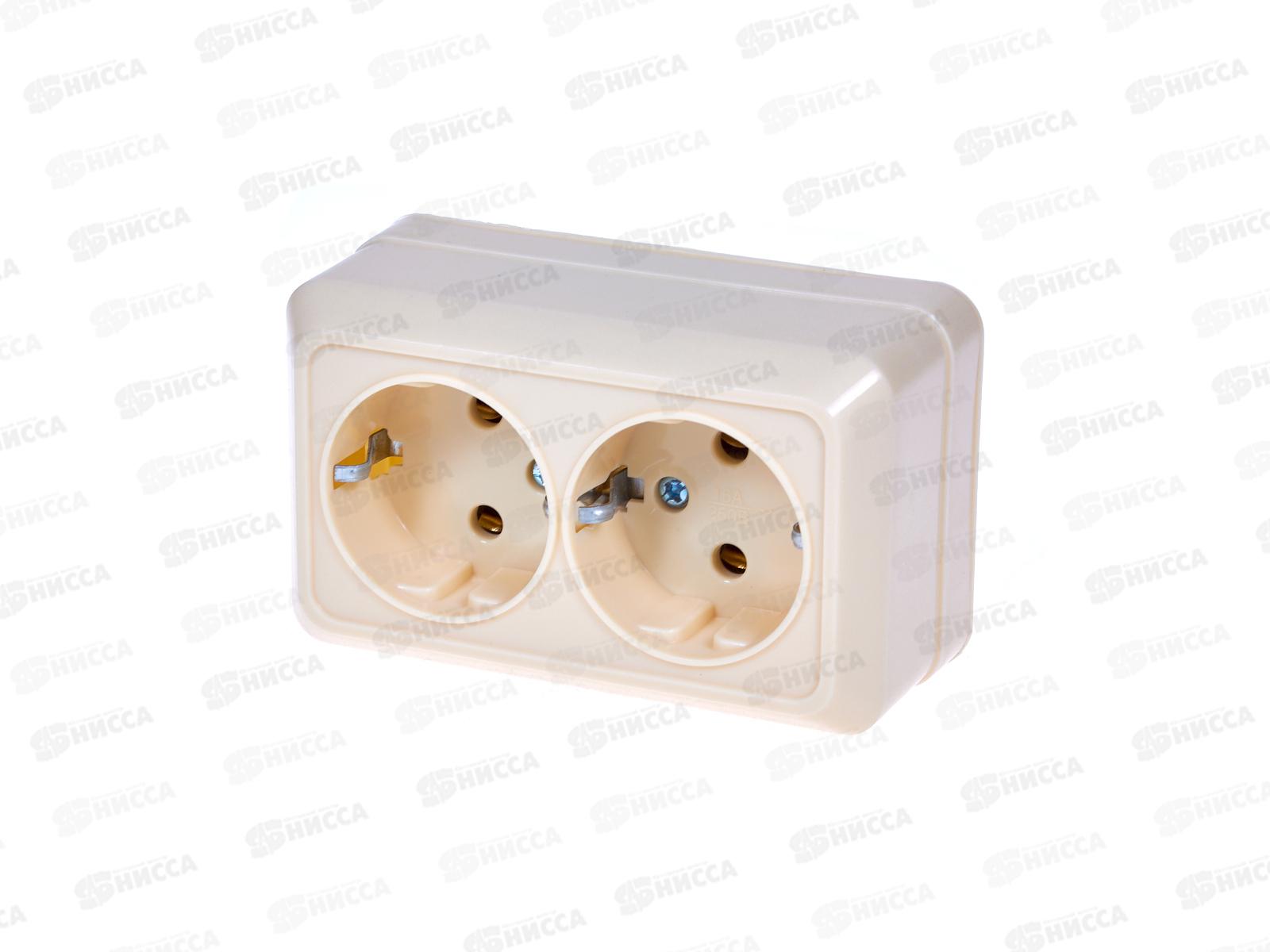 Розетка открытая установка 2 местная Прогресс с/з, бежевая *10/200