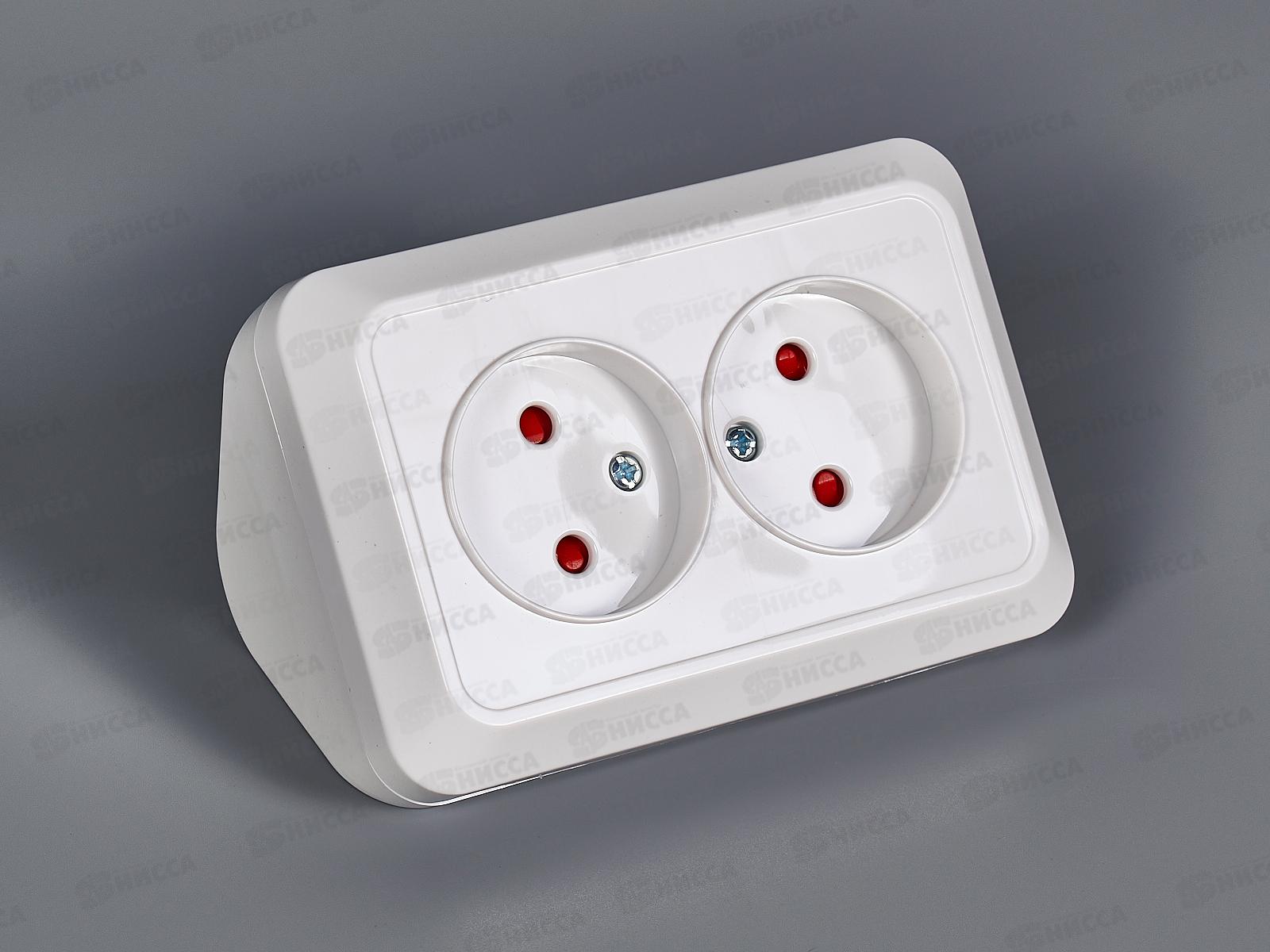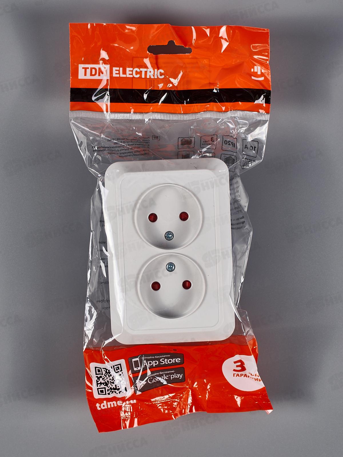 Розетка TDM двойная угловая открытая установка с з/ш, IP20 10А белый "Ладога", 0022