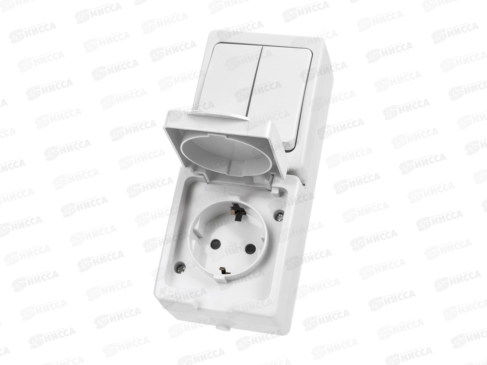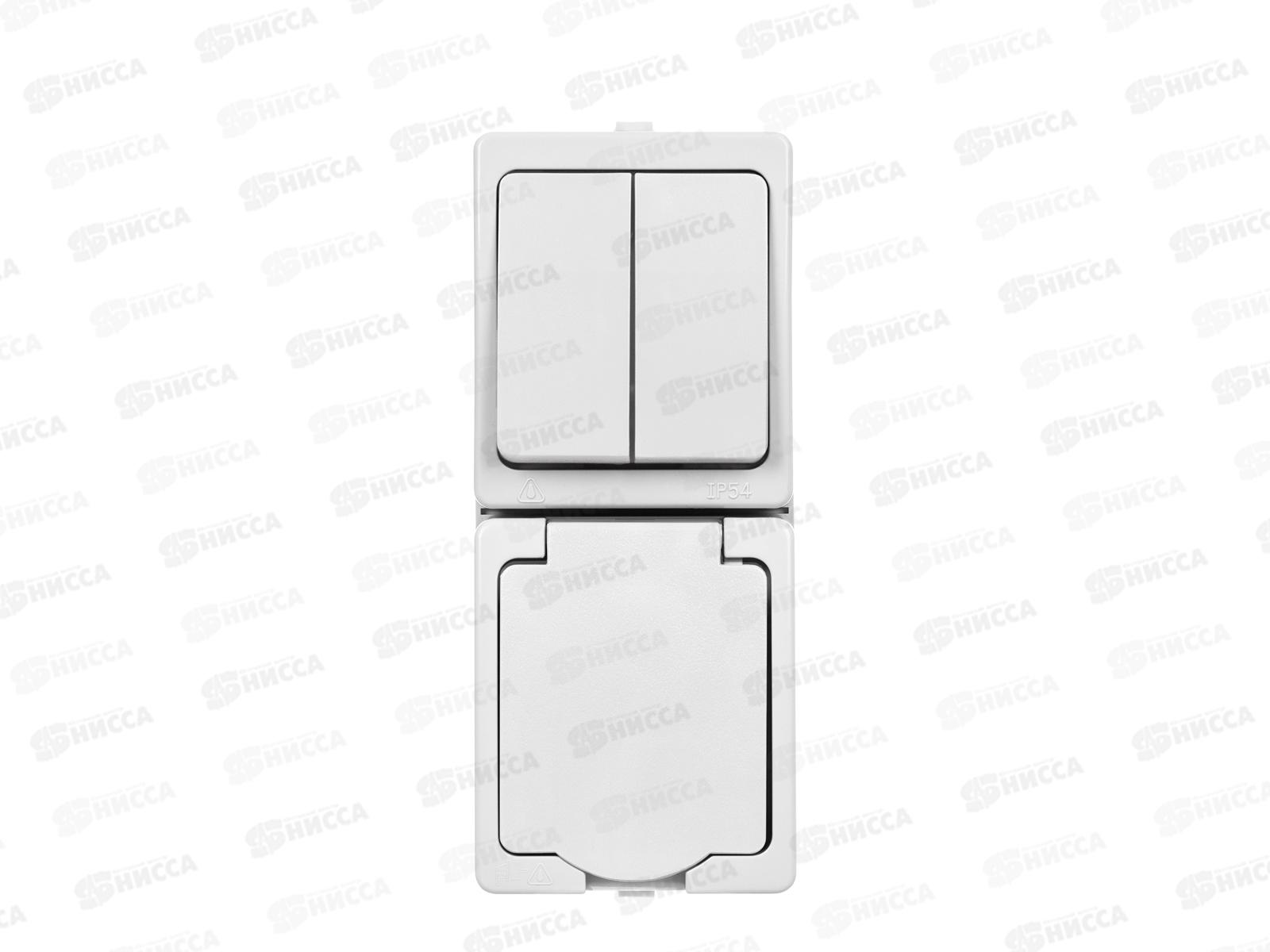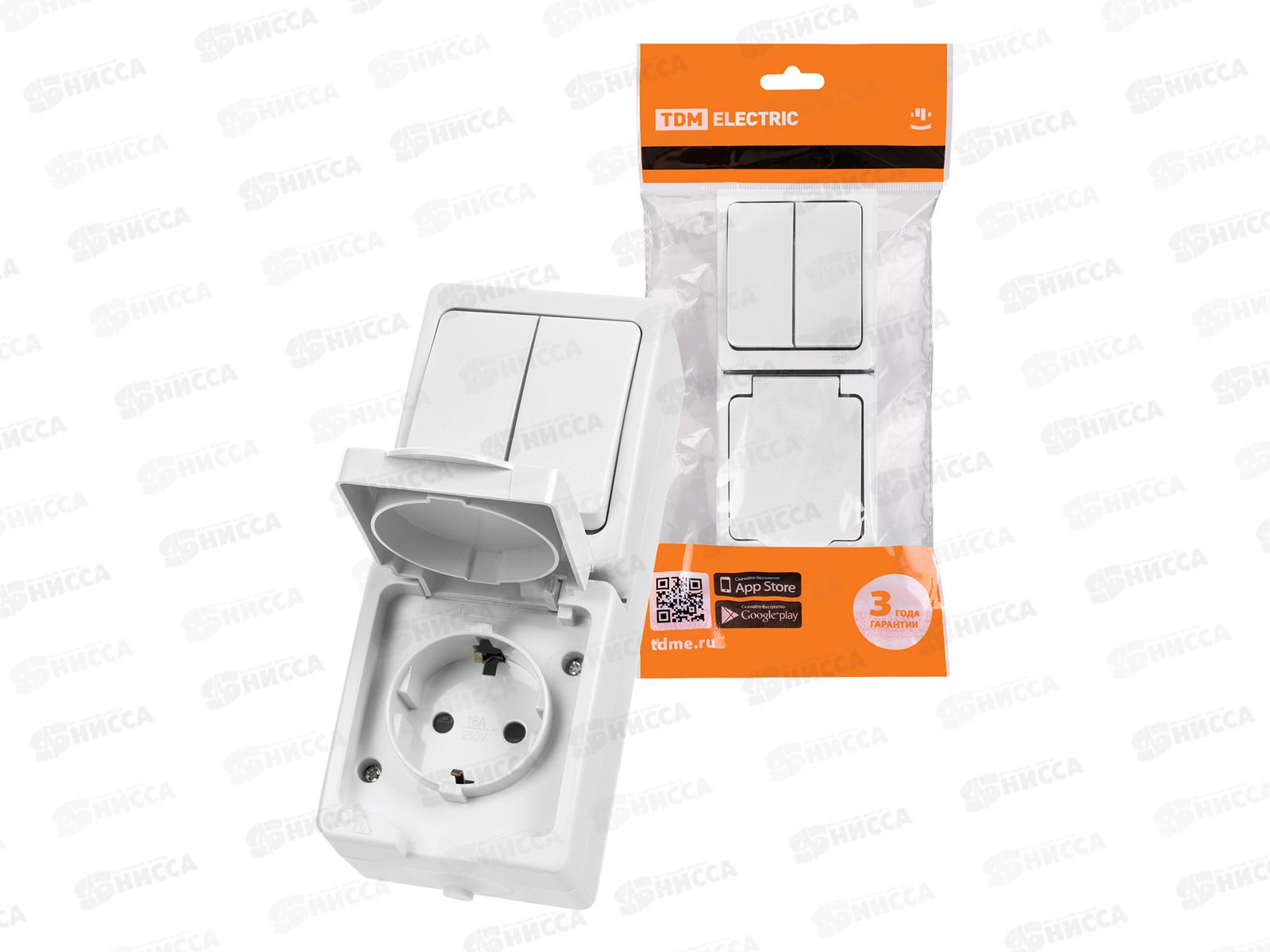Блок выключатель 2кл вертикальный+розетка 2П+З с з/ш БКВР TDM 1013