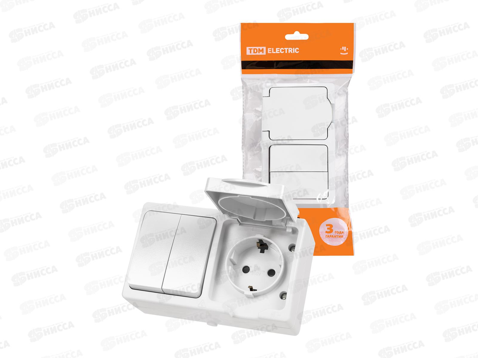 Блок выключатель 2кл горизон+розетка 2П+З с з/ш БКВР TDM 1012