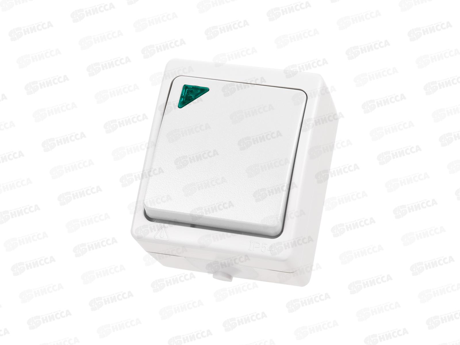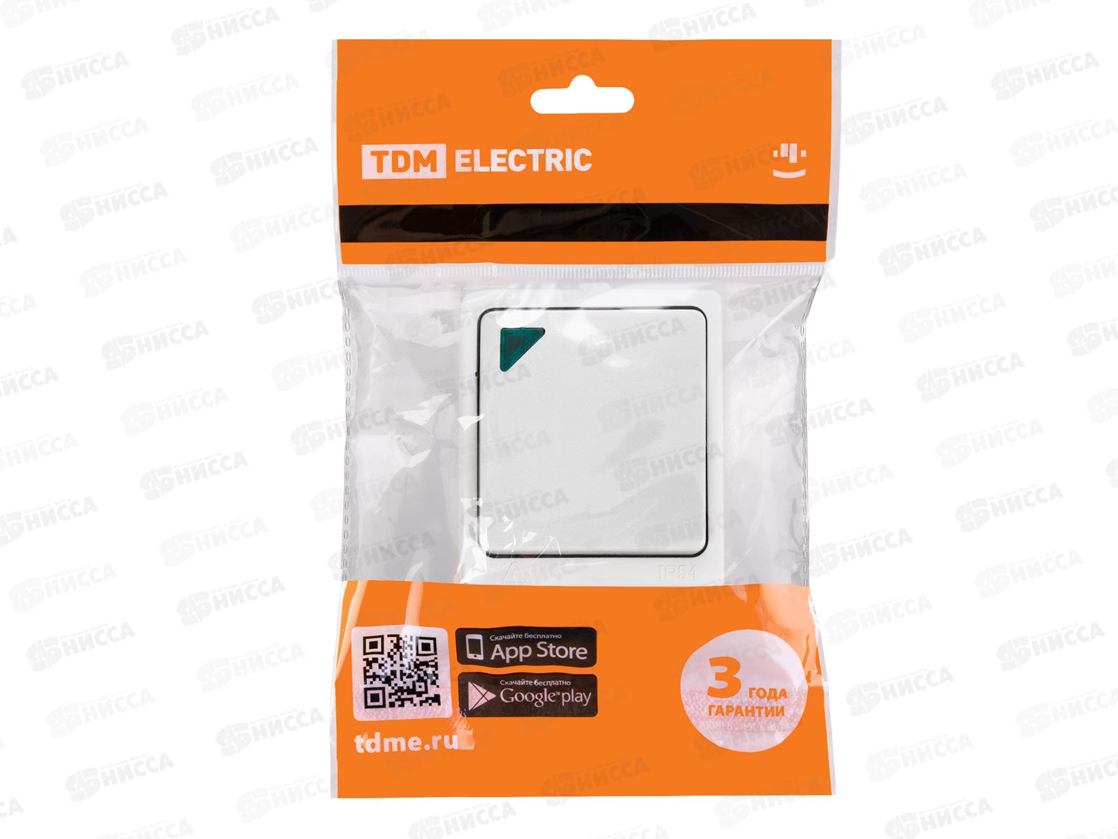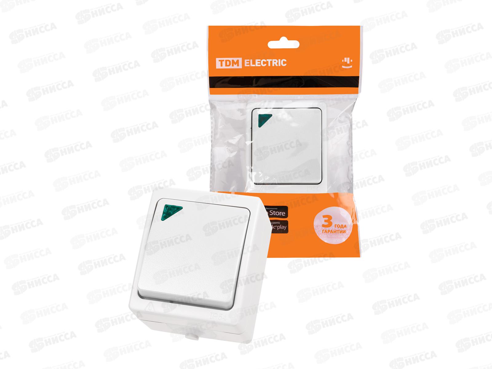 Выключатель TDM 1-клавиша, открытая установка с подсветкой IP54 10А "Вуокса" белый 1004