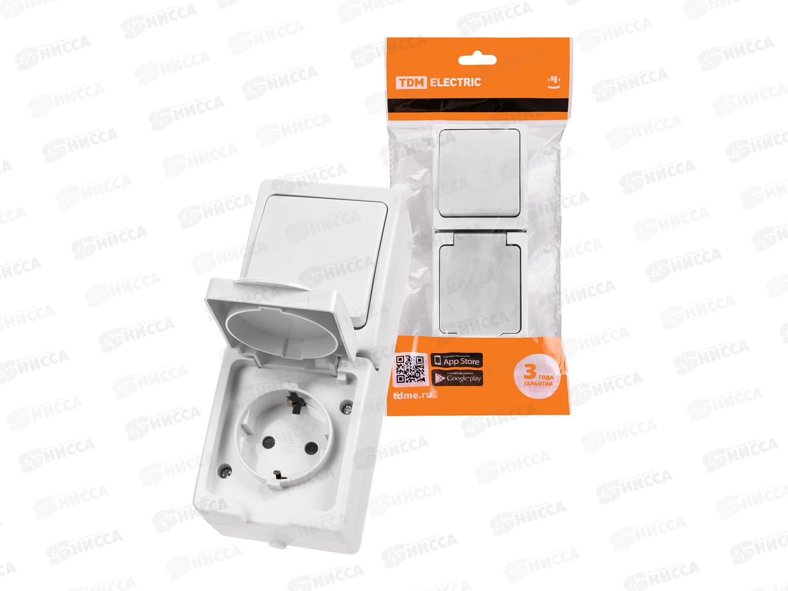 Блок выключатель 1кл вертикальный+розетка 2П+З с з/ш БКВР TDM 1011