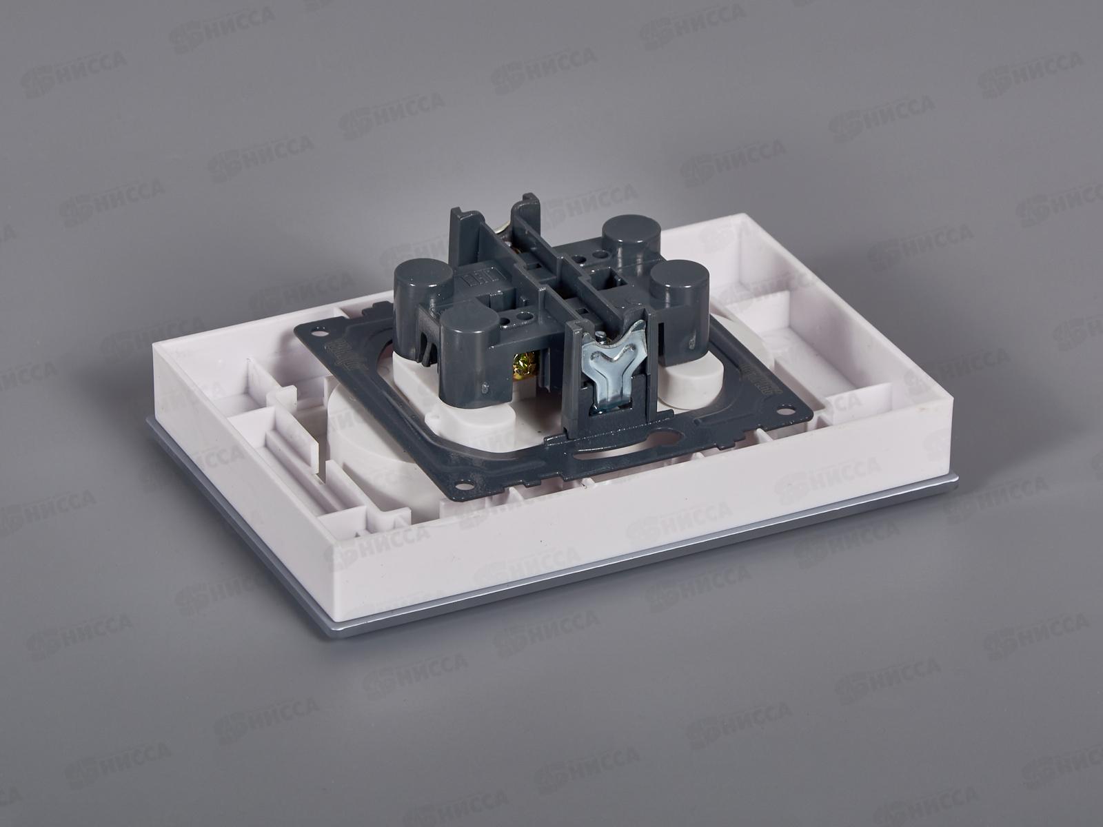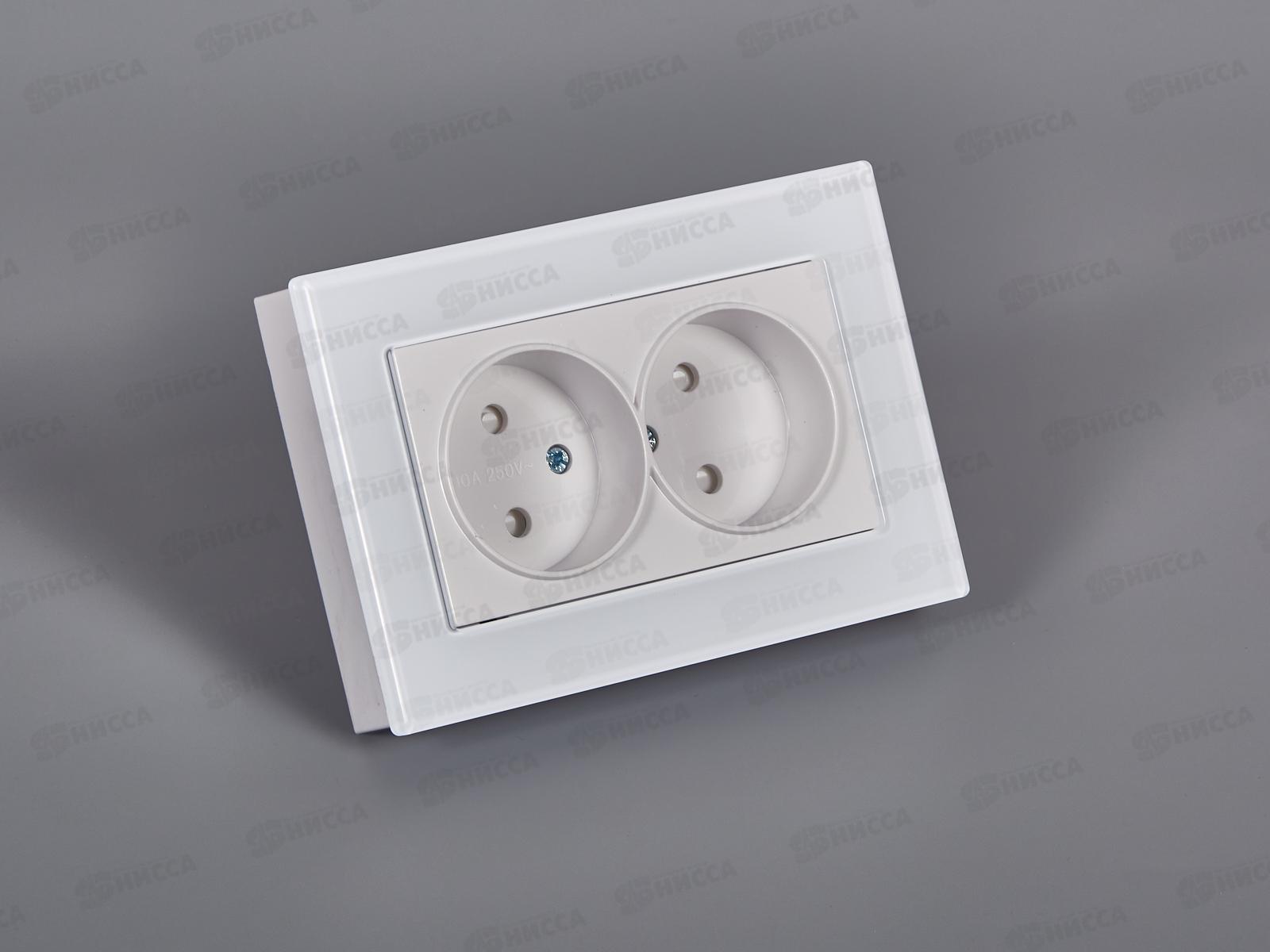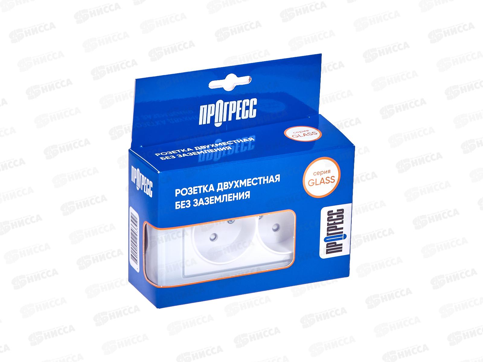 Розетка скрытой установки 2 местная Прогресс Glass защитные шторки, белая *10/100