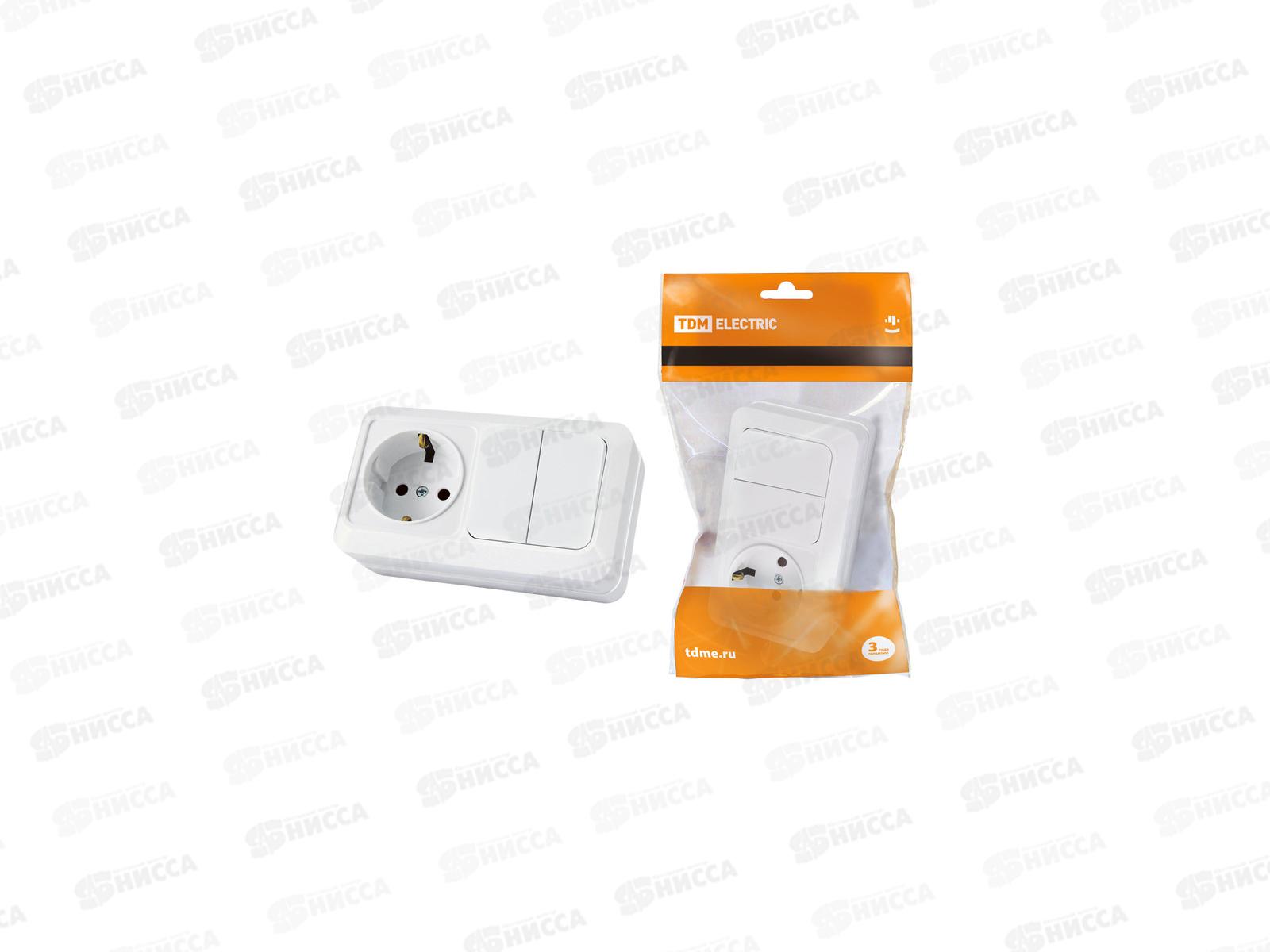Блок комбинированный выключатель 2 клавиши 10А + розетка 2П с заземлением 16А, БКВР IP20 белый "Ладога" TDM, 0102 *5/100