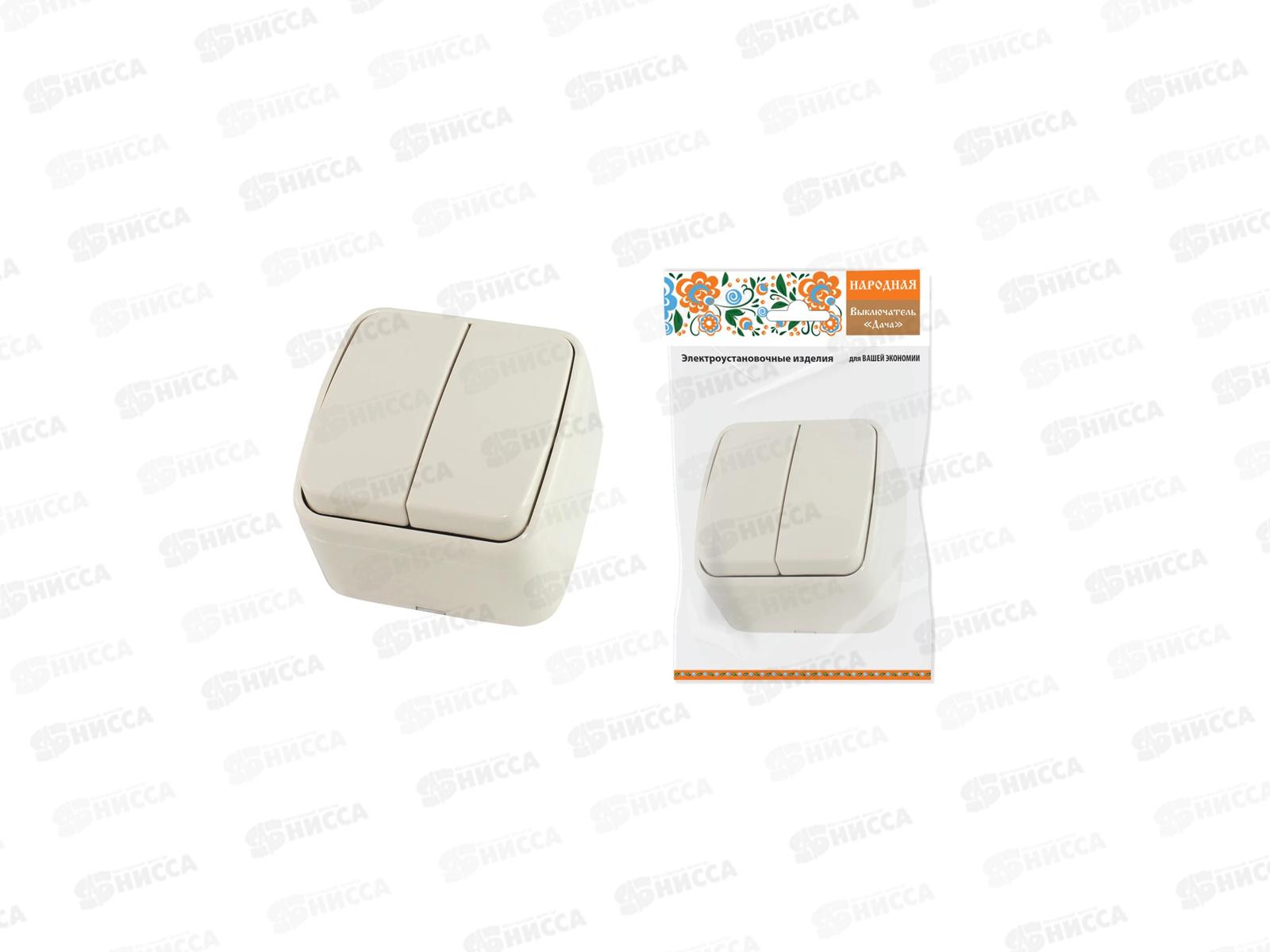 Выключатель открытая установка 2клавиши IP20 10А, сл.кость "Дача" Народная, 0015 *10/100