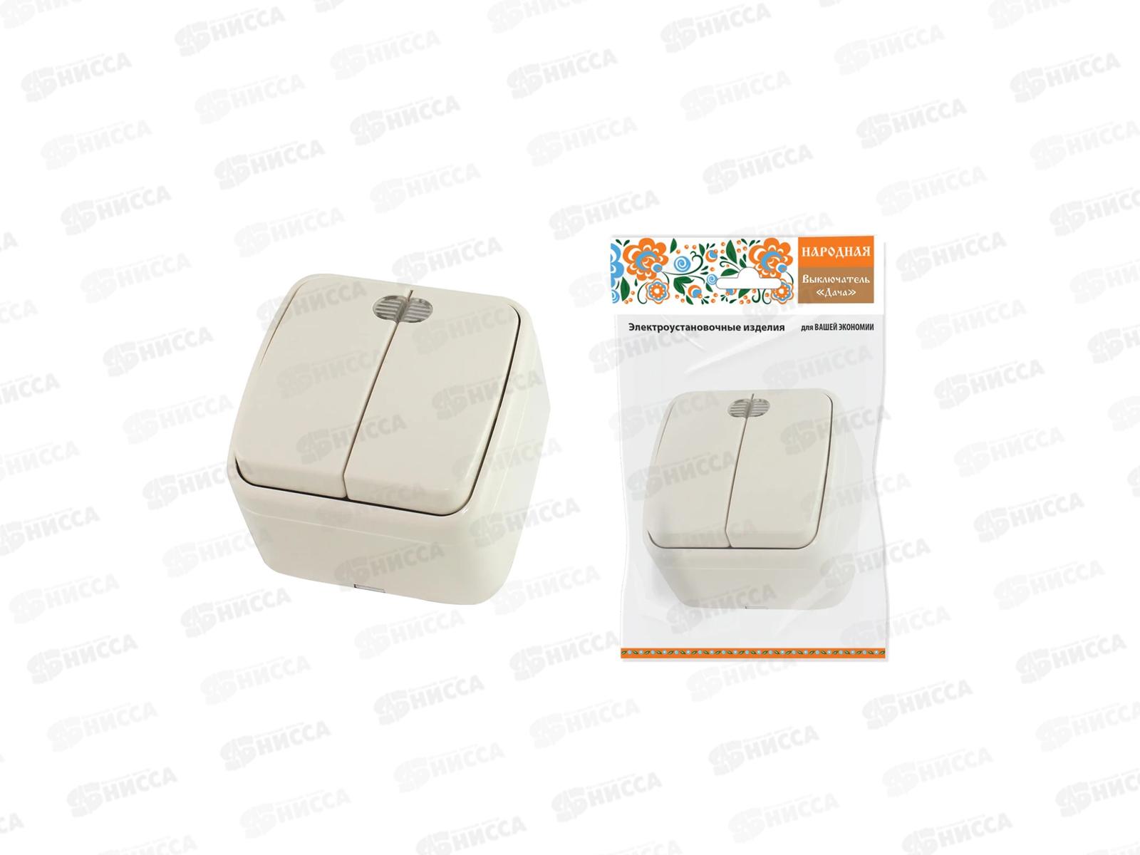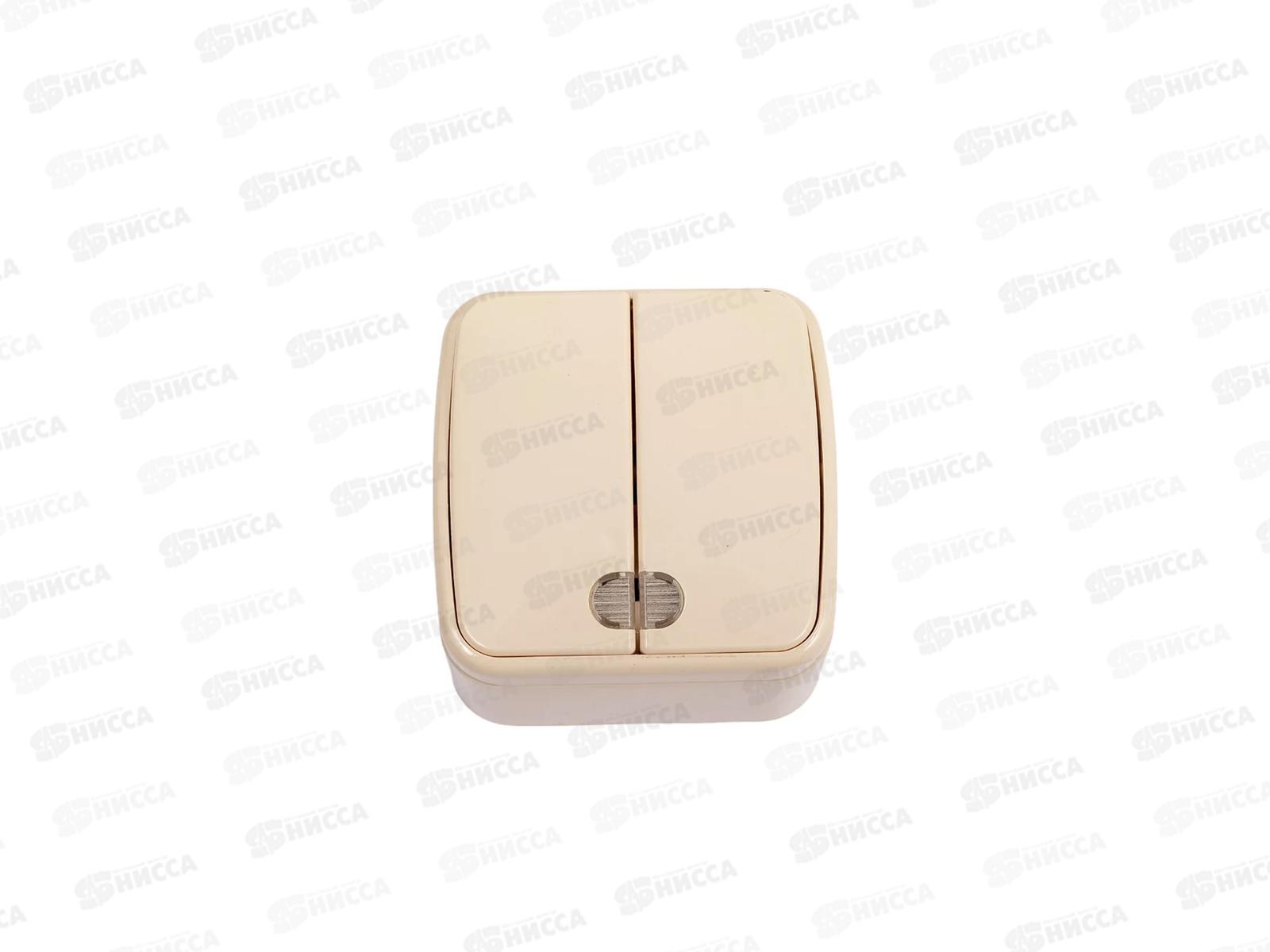 Выключатель открытая установка 2клавиши IP20 10А, сл.кость, с подсветкой, "Дача", 0017 *10/100