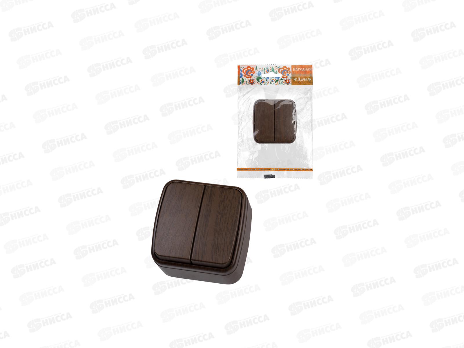 Выключатель 2-клавиши открытой установки IP20 10А, венге "Дача" Народная, 0042 *10/100