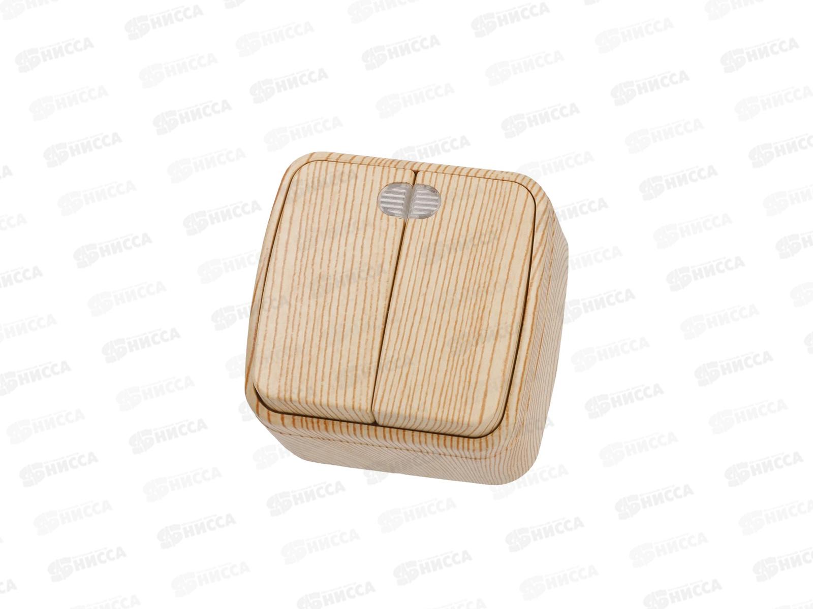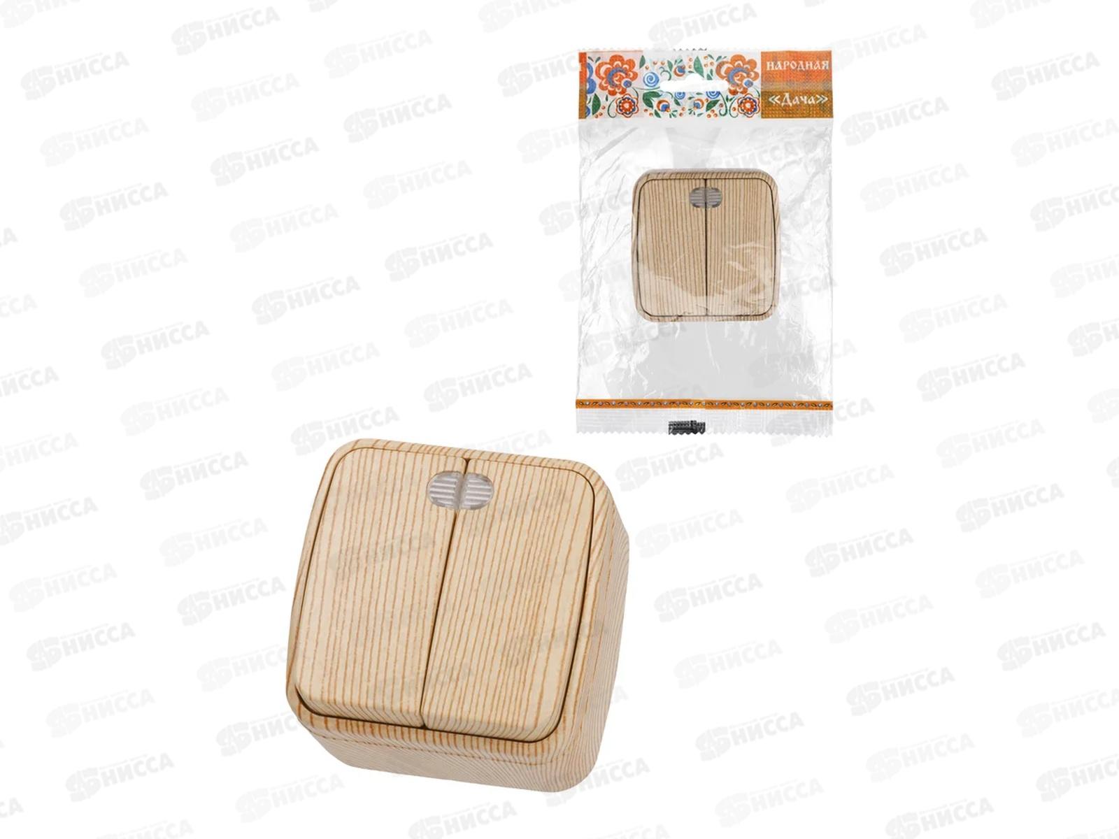 Выключатель 2-клавиши открытой установки с подсветкой IP20 10А, сосна "Дача" Народная, 0054 *10/100