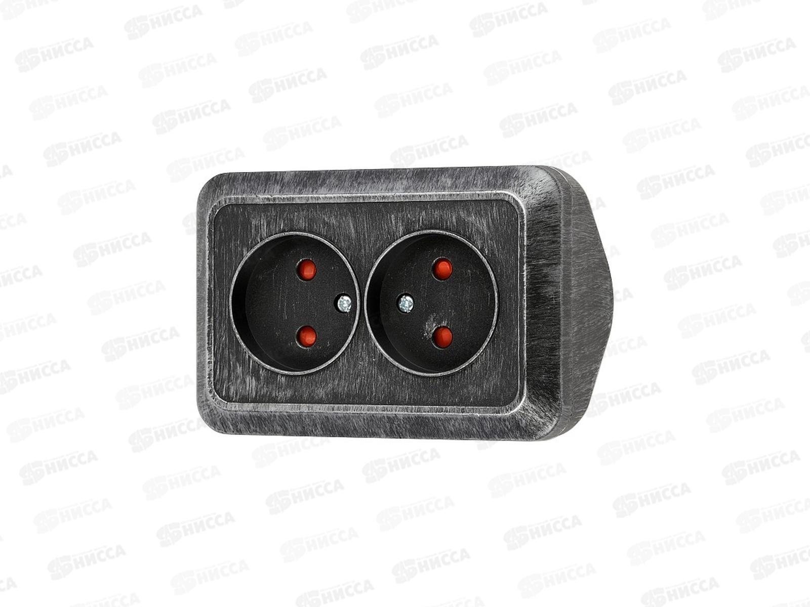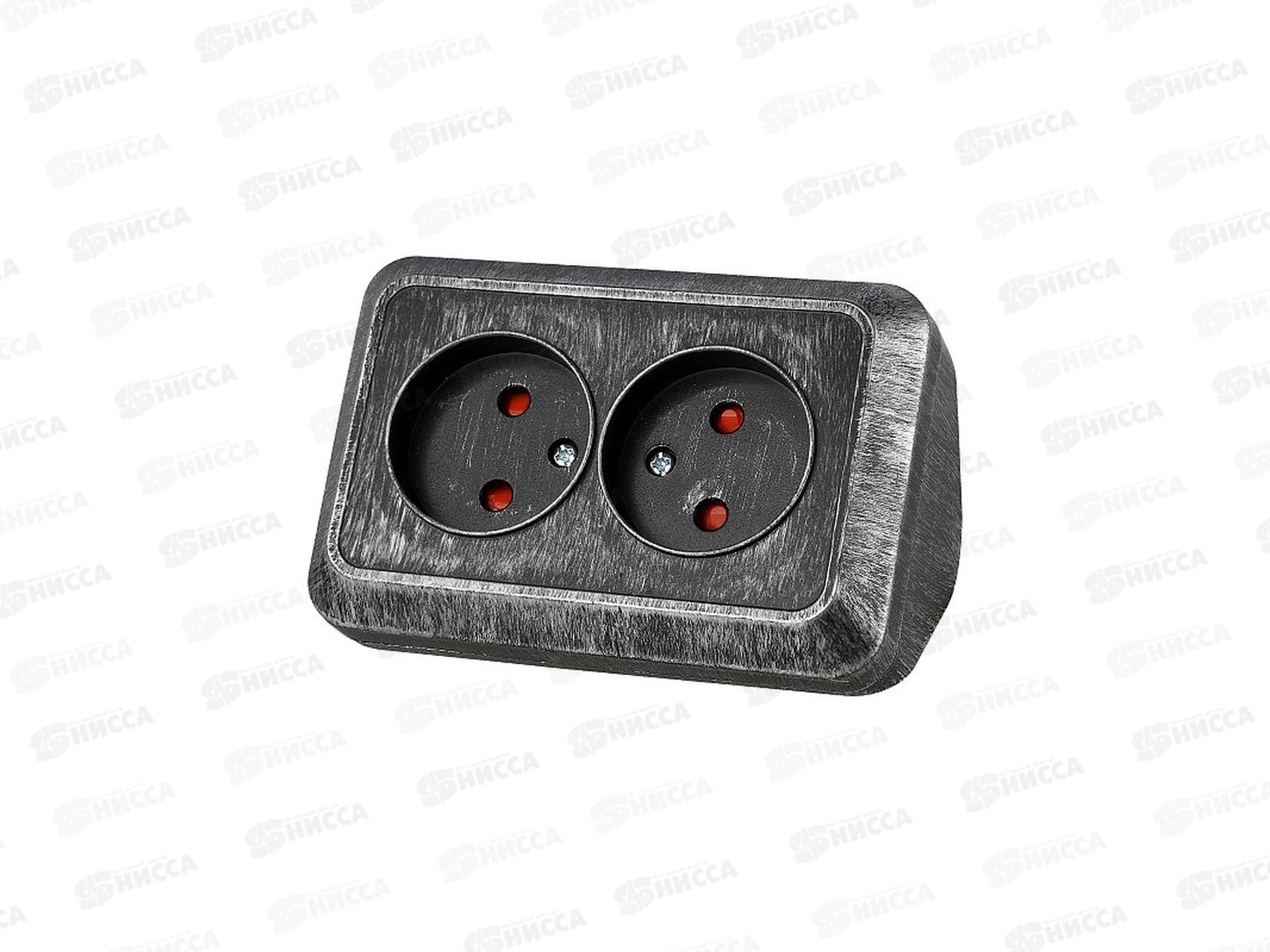 Розетка TDM двойная угловая открытой установки с з/ш, IP20 10А серебро "Ладога", 0389