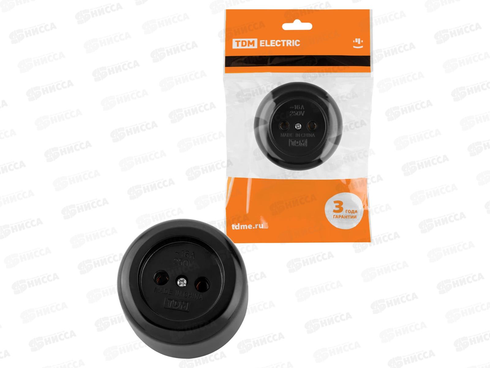 Розетка TDM о/у, 16А черная "Ретро" карболит *12
