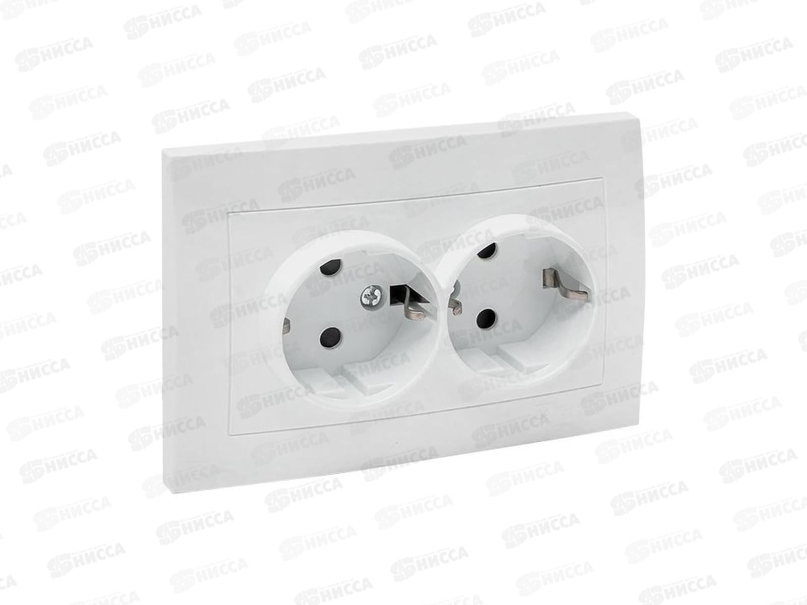 Розетка EKF PROxima Валенсия двойная с заземлением скрытой установки, 16А белая с крышкой, защитные шторки, IP44