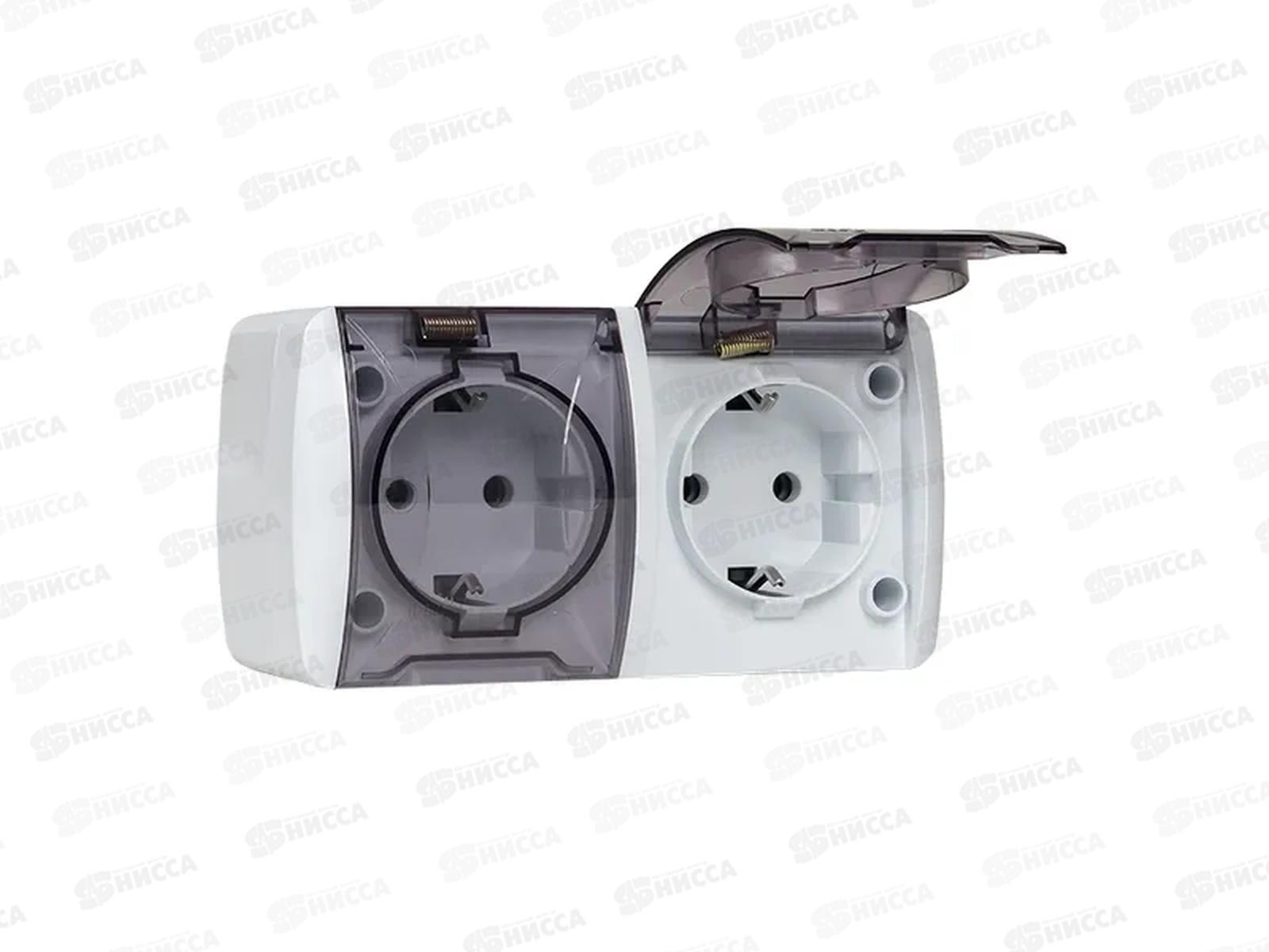 Розетка EKF Владивосток Розетка двойная 16А с заземлением, с прозрачной крышкой, IP54
