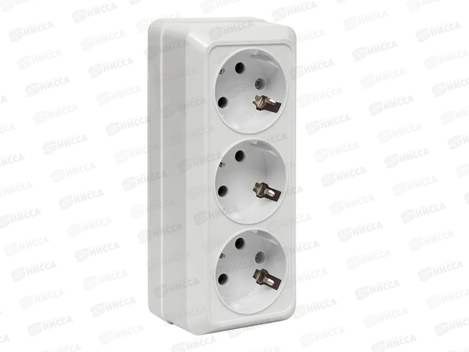 Розетка EKF Рим 3-местная 16А с заземелением, открытой уставновкибелая