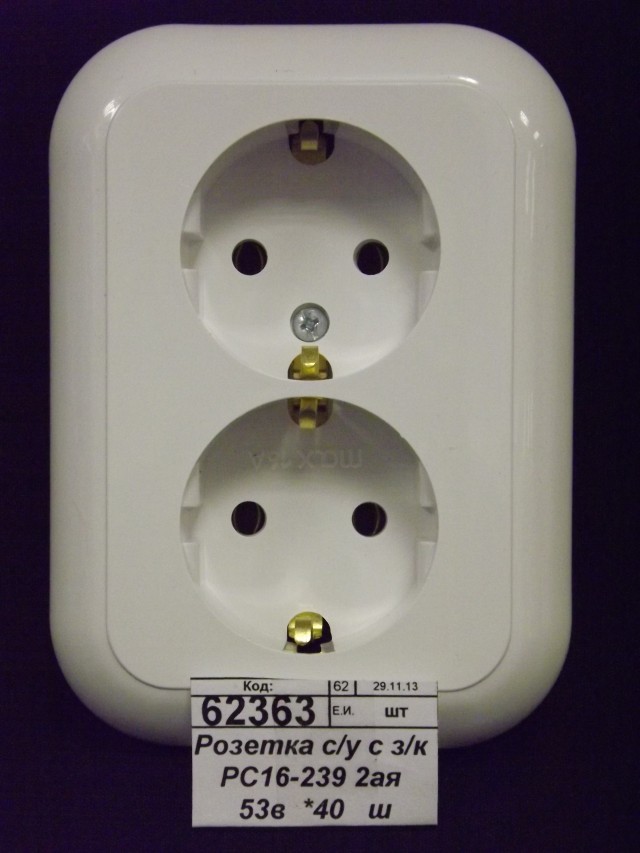 Розетка с/у 2-х местная с з/к РС16-239 53в *40 ш