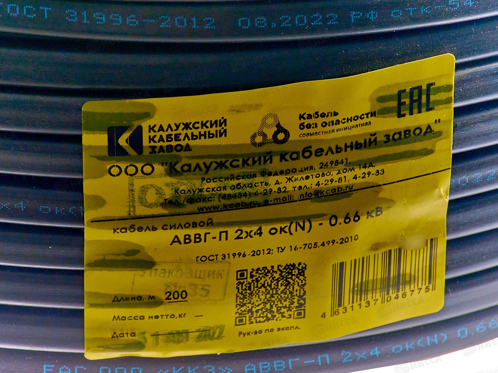 Кабель АВВГ 2*4,0 черный (м) плоский, ККЗ *200