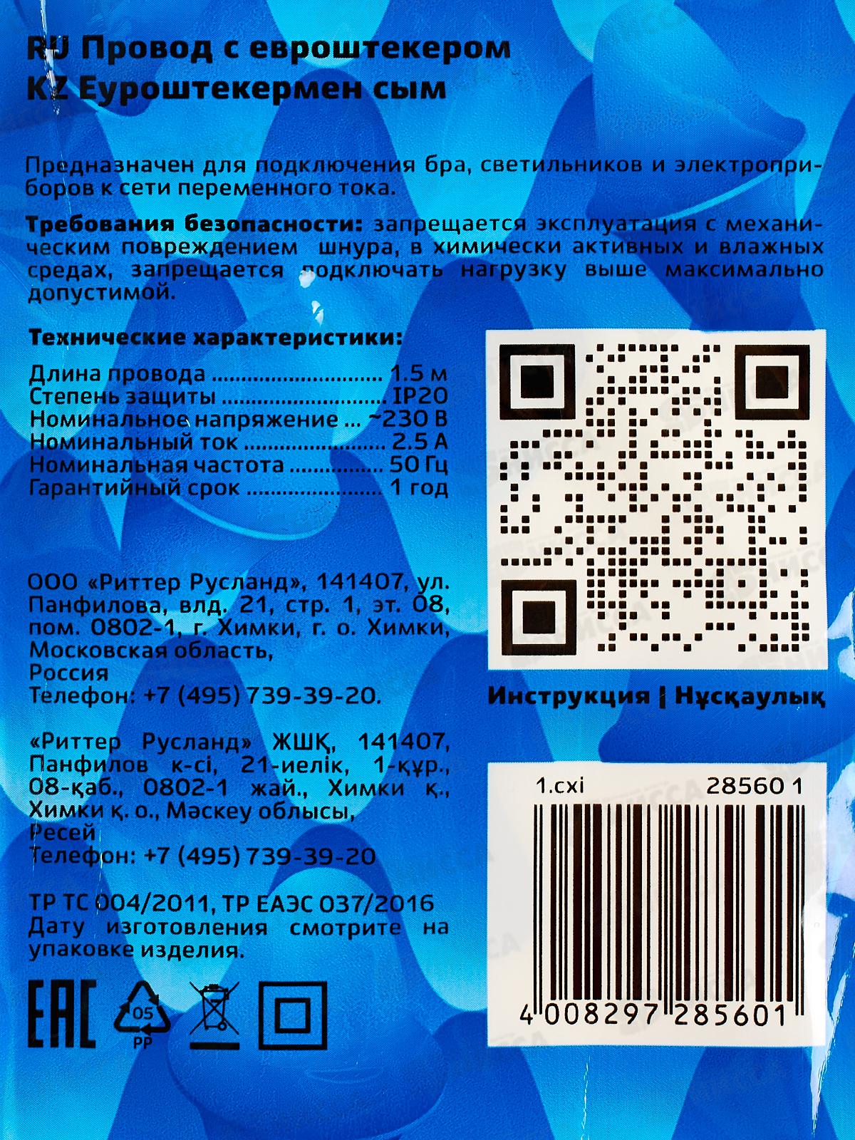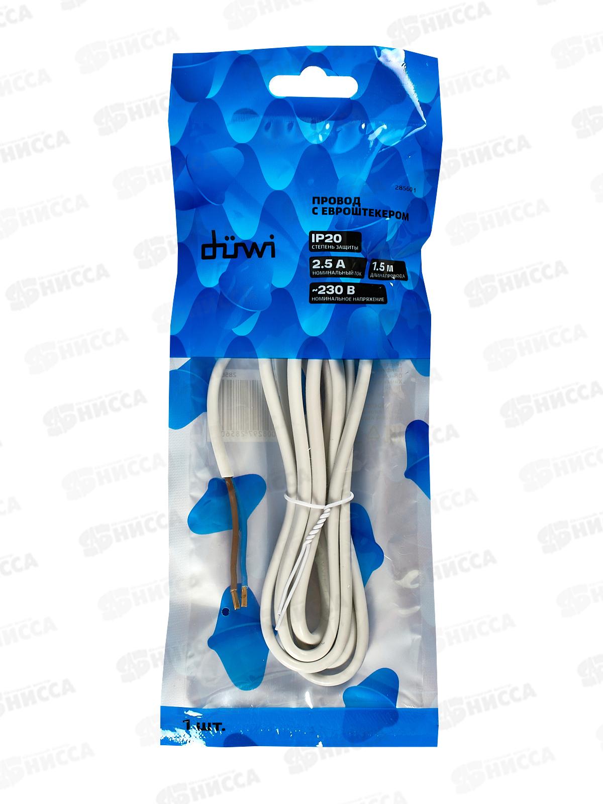 Провод с евроштекером 1,5м 2,5А белый duwi 28560