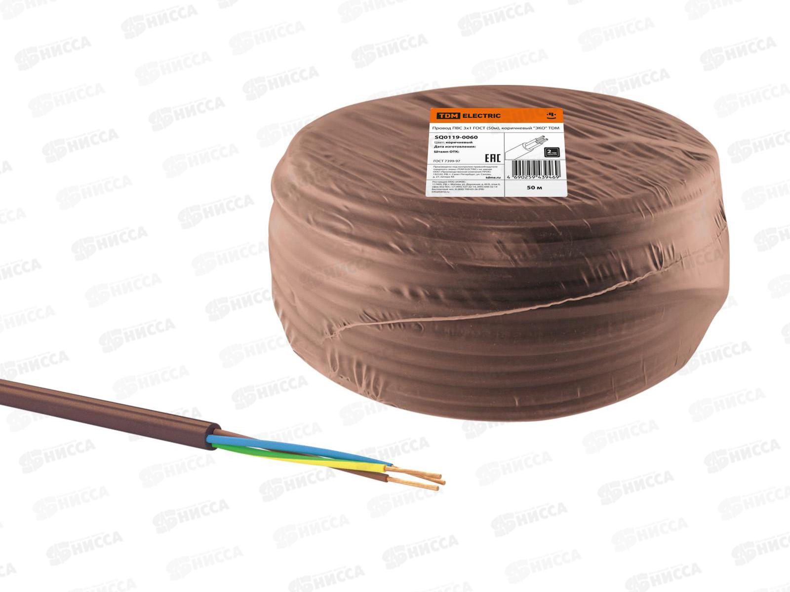 • Провод ПВС 3*1,0мм коричневый ГОСТ (50м) ЭКО , TDM, 0060 *50