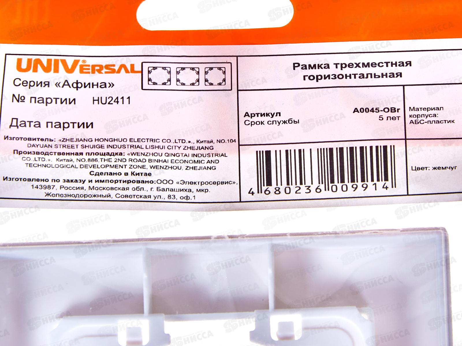 Рамка Афина трехместная универсальная жемчуг, А0045-OBr*10