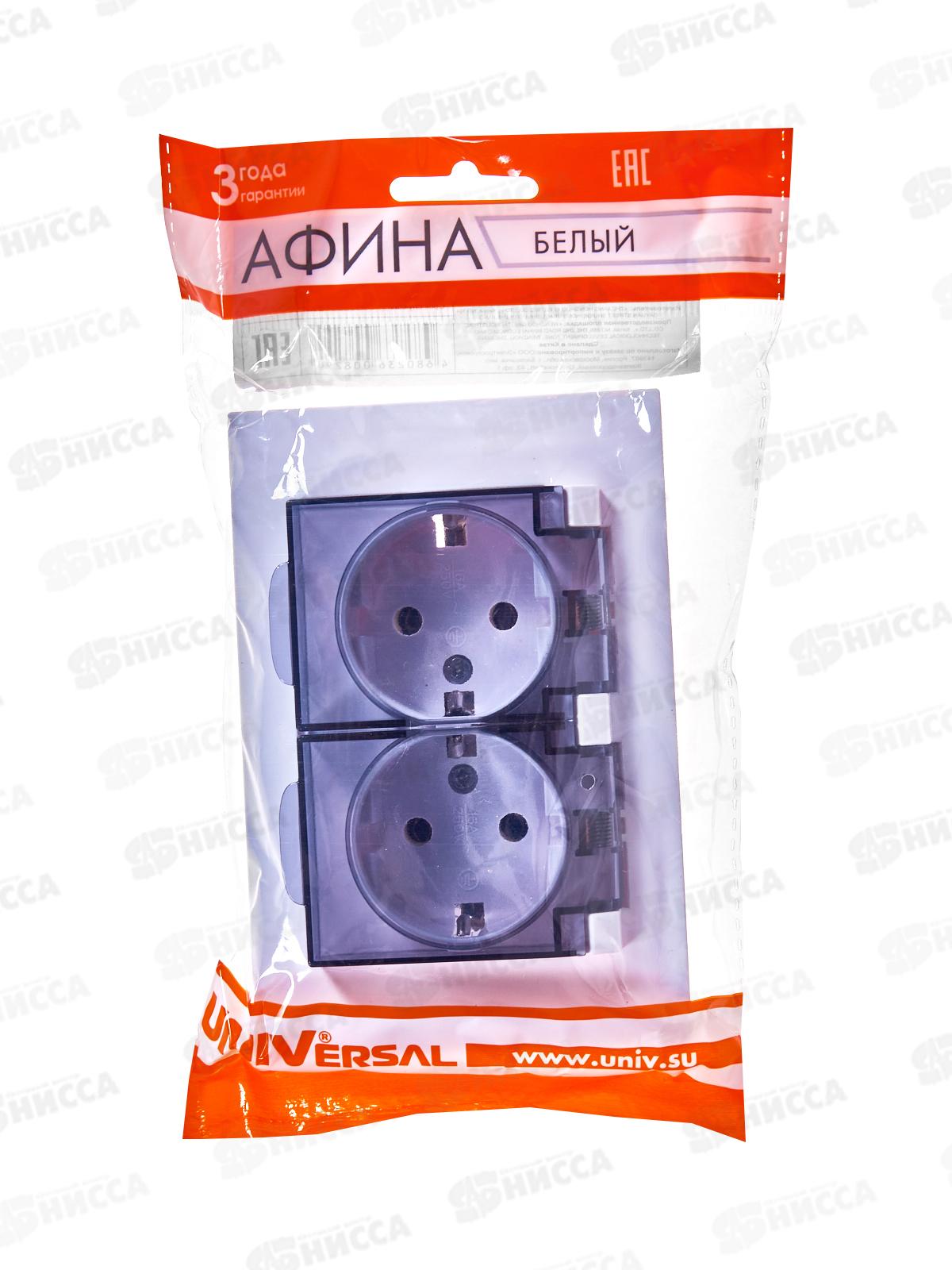 Розетка Афина 2-местная с крышкой скрытой установки, с заземлением 16А, 220В, белая, A0031*10
