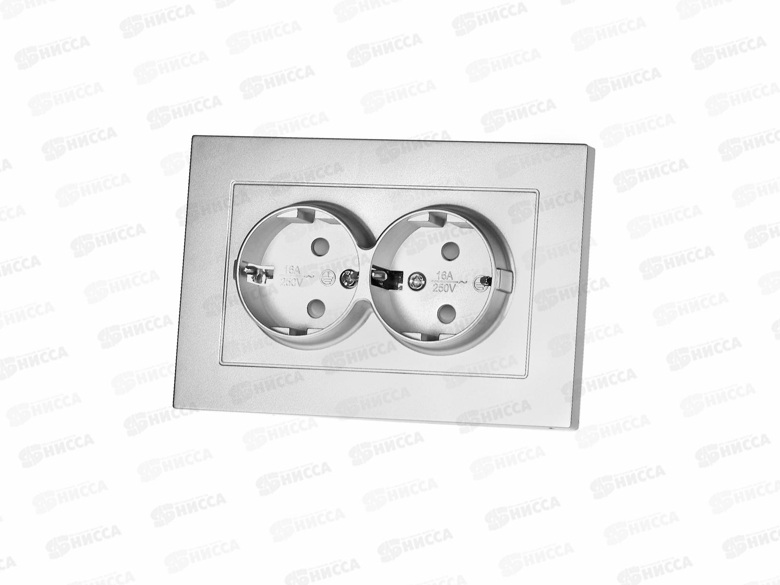 Розетка Афина 2-местная скрытой установки, с заземлением,з/ш 16А, 220В серебро, A0050-S*10