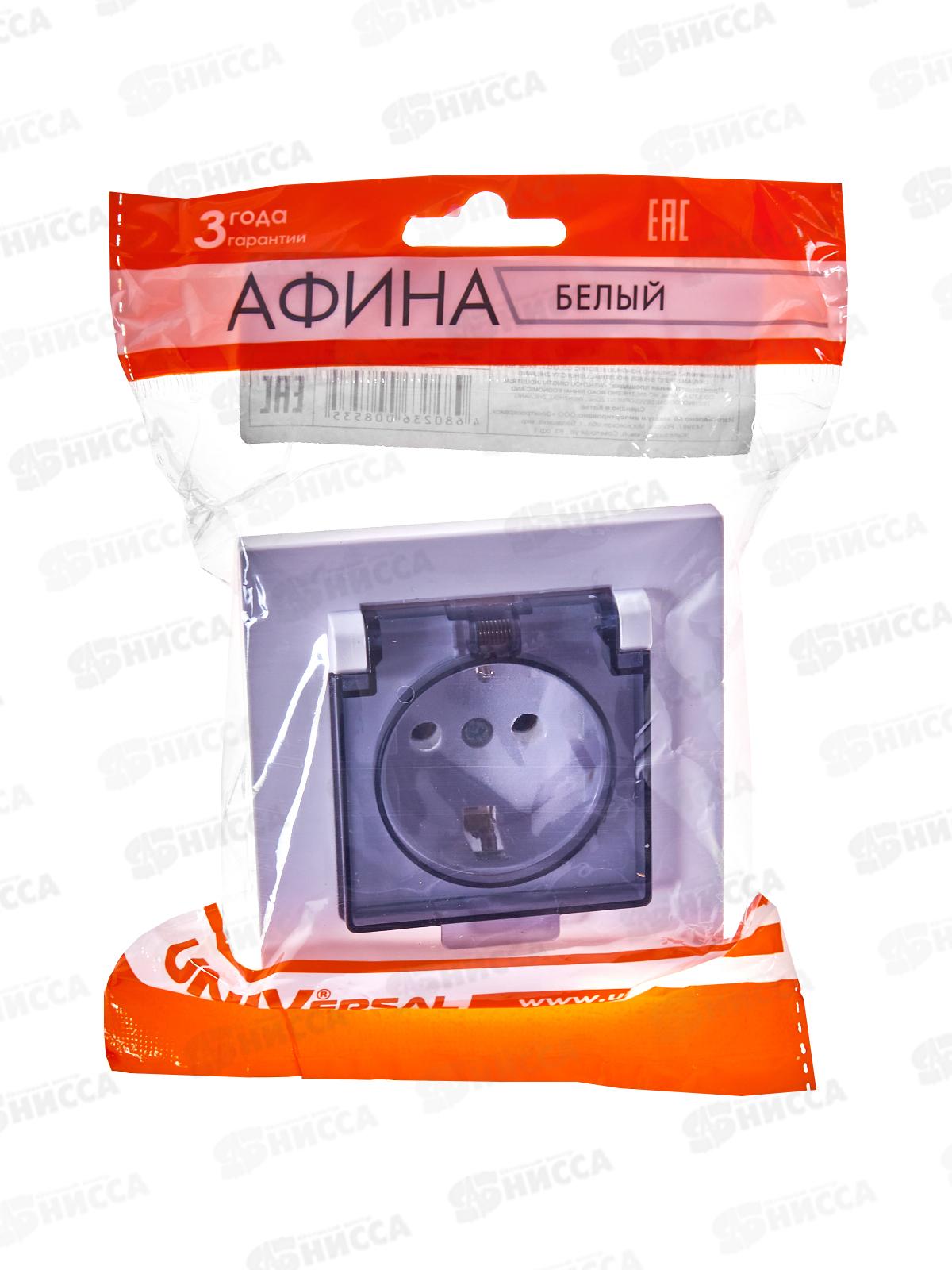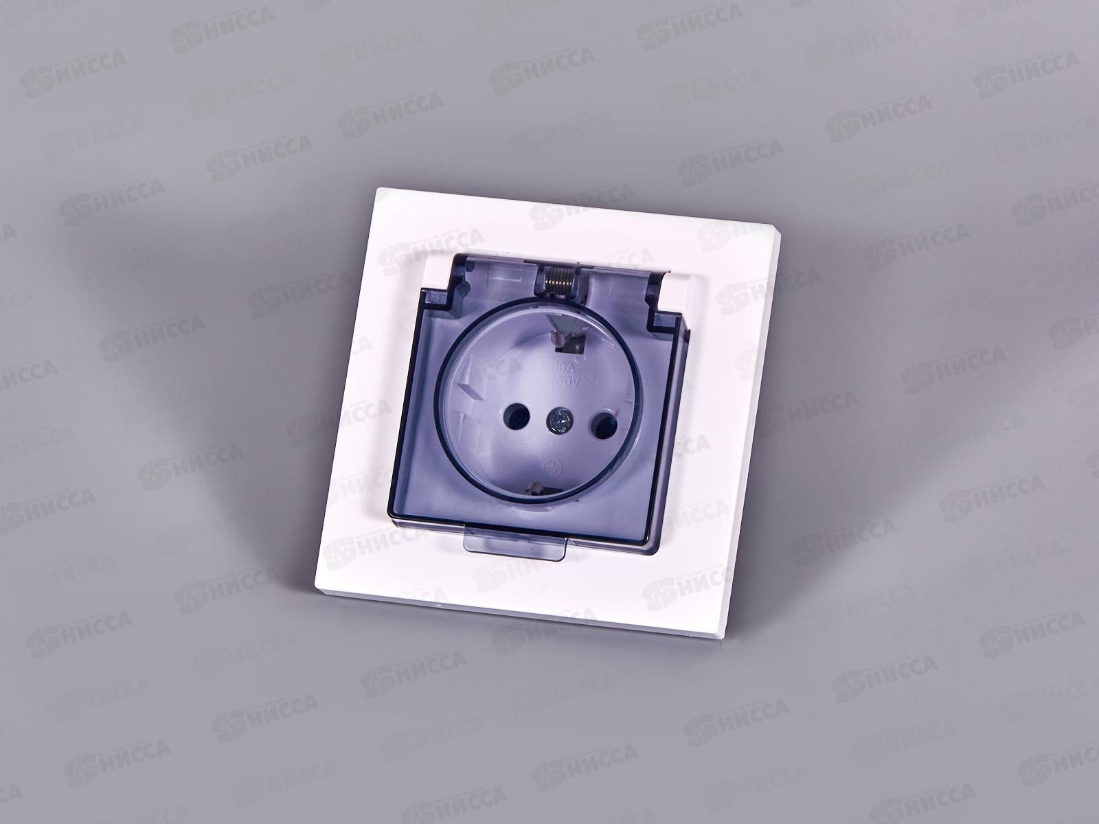 Розетка Афина 1-местная скрытой установки, c заземлением, с крышкой 16А, 220В белая, А0030*10