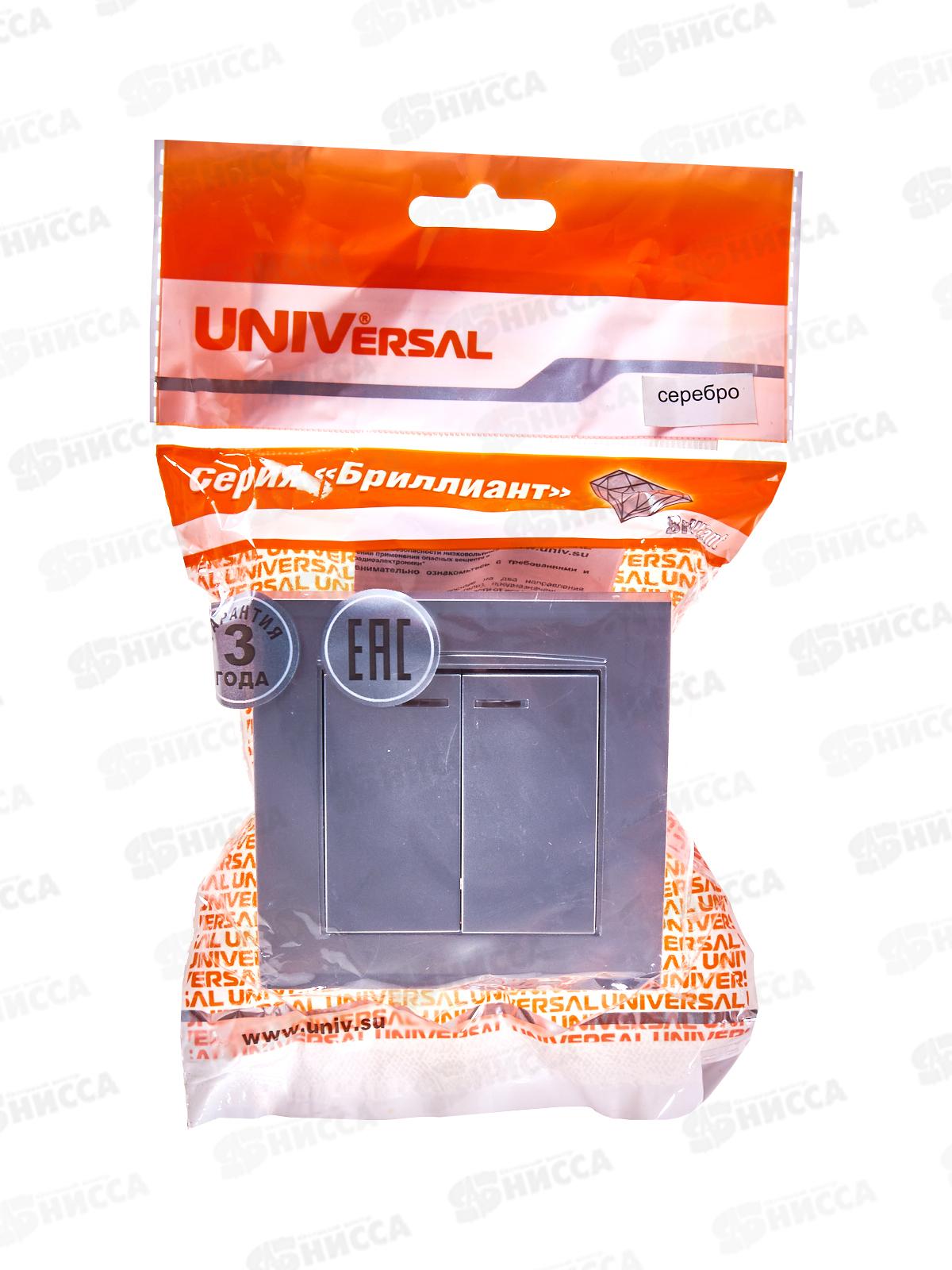 Выключатель Бриллиант 2-клавиши скрытой установки, 10А, 220В, подсветка,серебро, 7949667*10