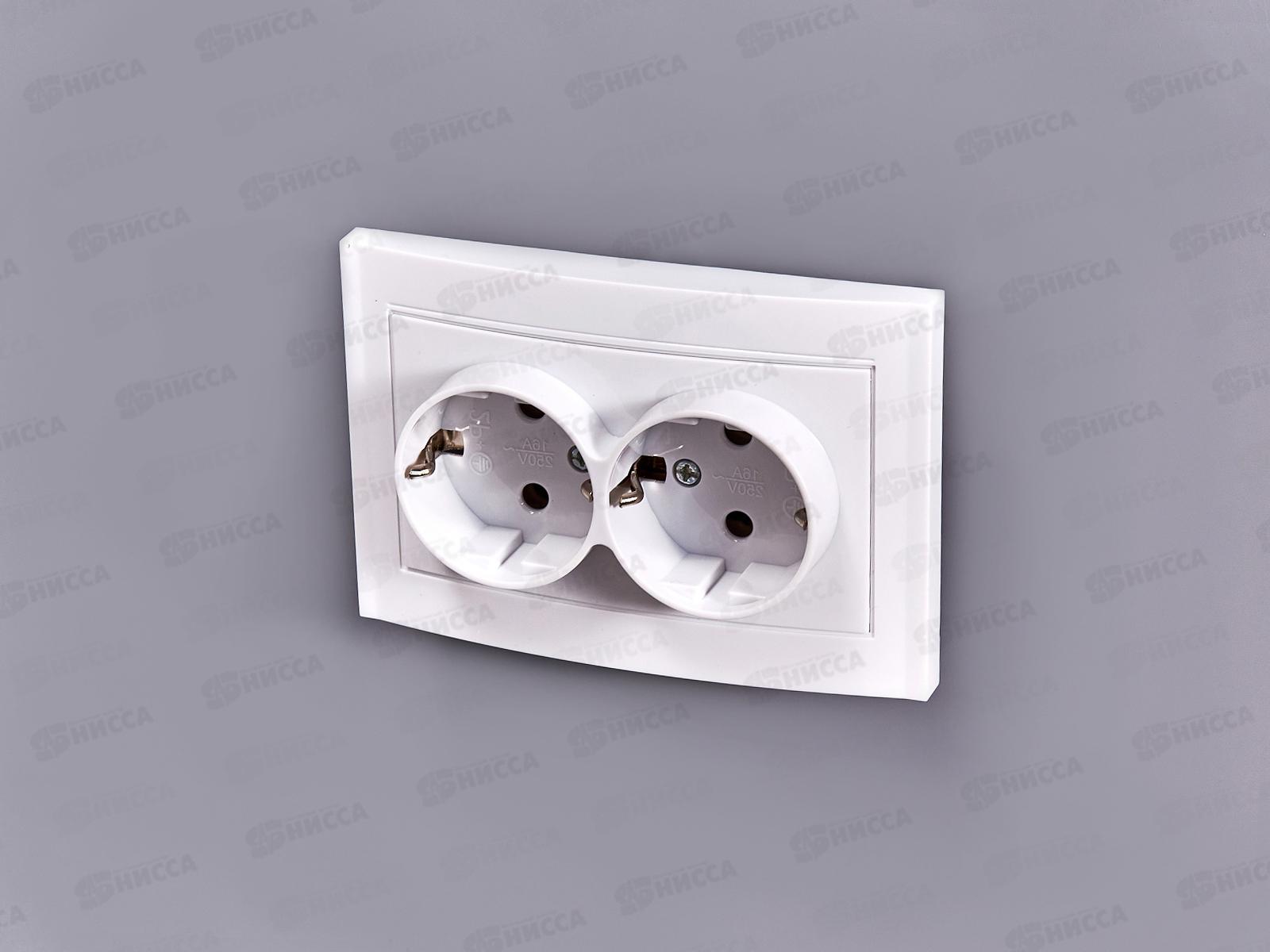 Розетка Бриллиант 2-местная с заземлением, скрытой установки, 16А, 220В,белая, керамика, 7947533*10