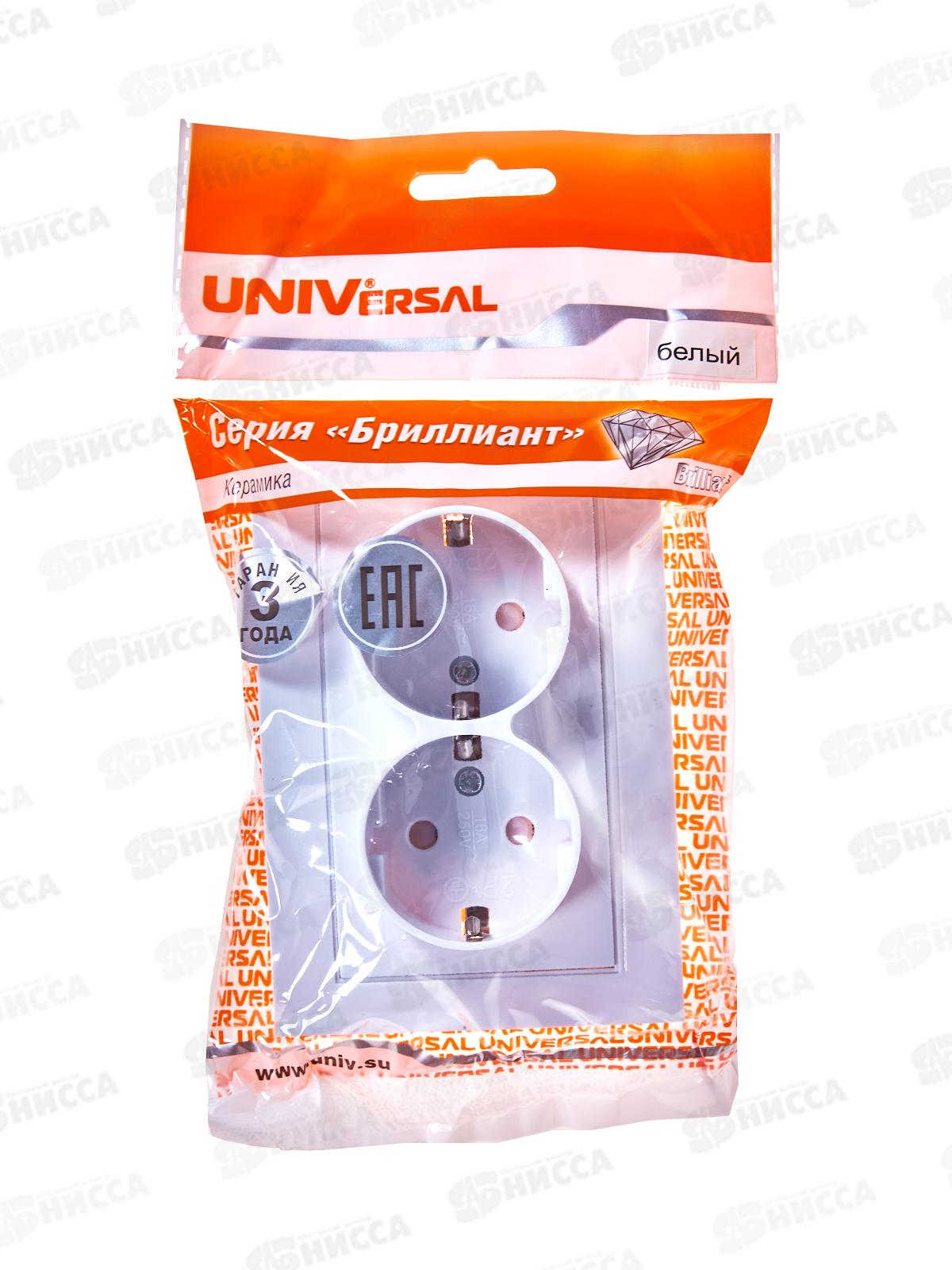 Розетка Бриллиант 2-местная с заземлением, скрытой установки,з/ш 16А, 220В,белая,керамика, 7947540*10