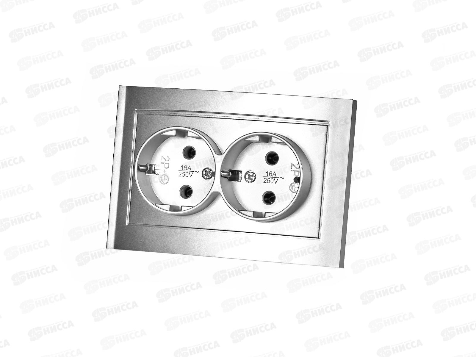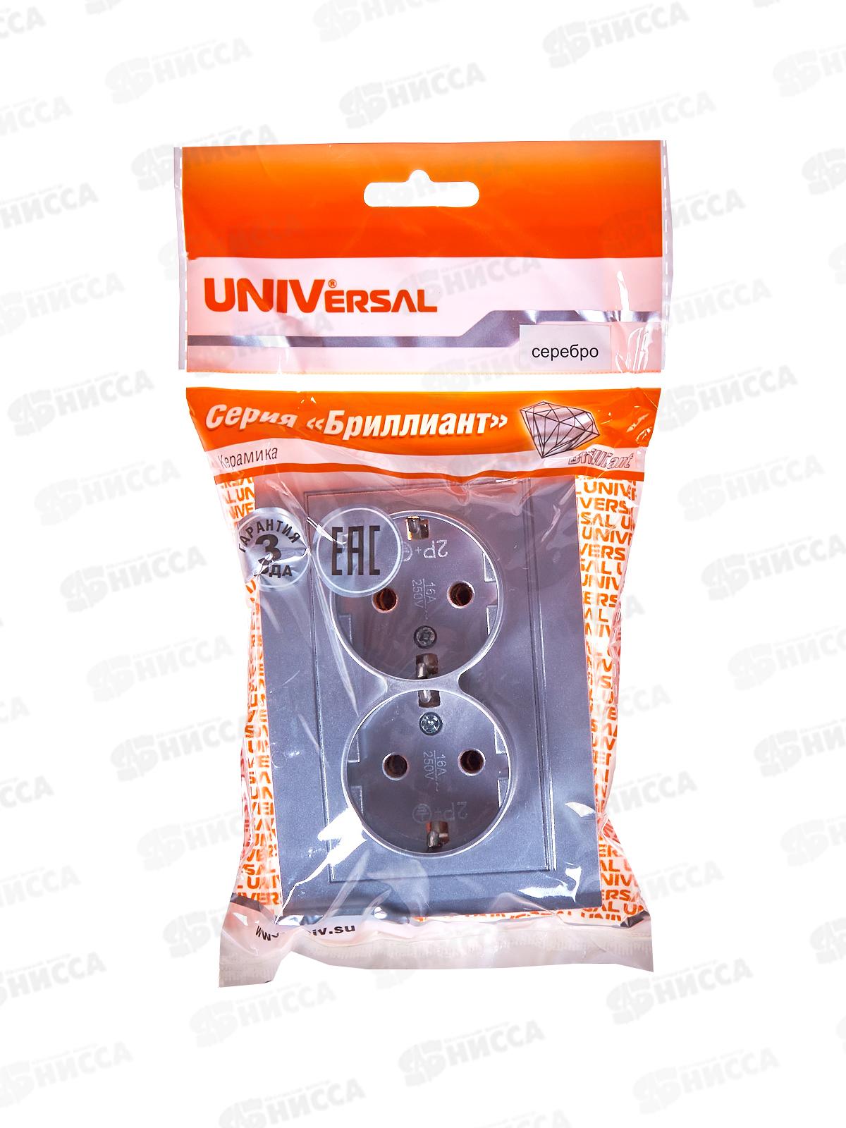 Розетка Бриллиант 2-местная с заземлением, скрытой установки, 16А, 220В,серебро,керамика, 7949780*10