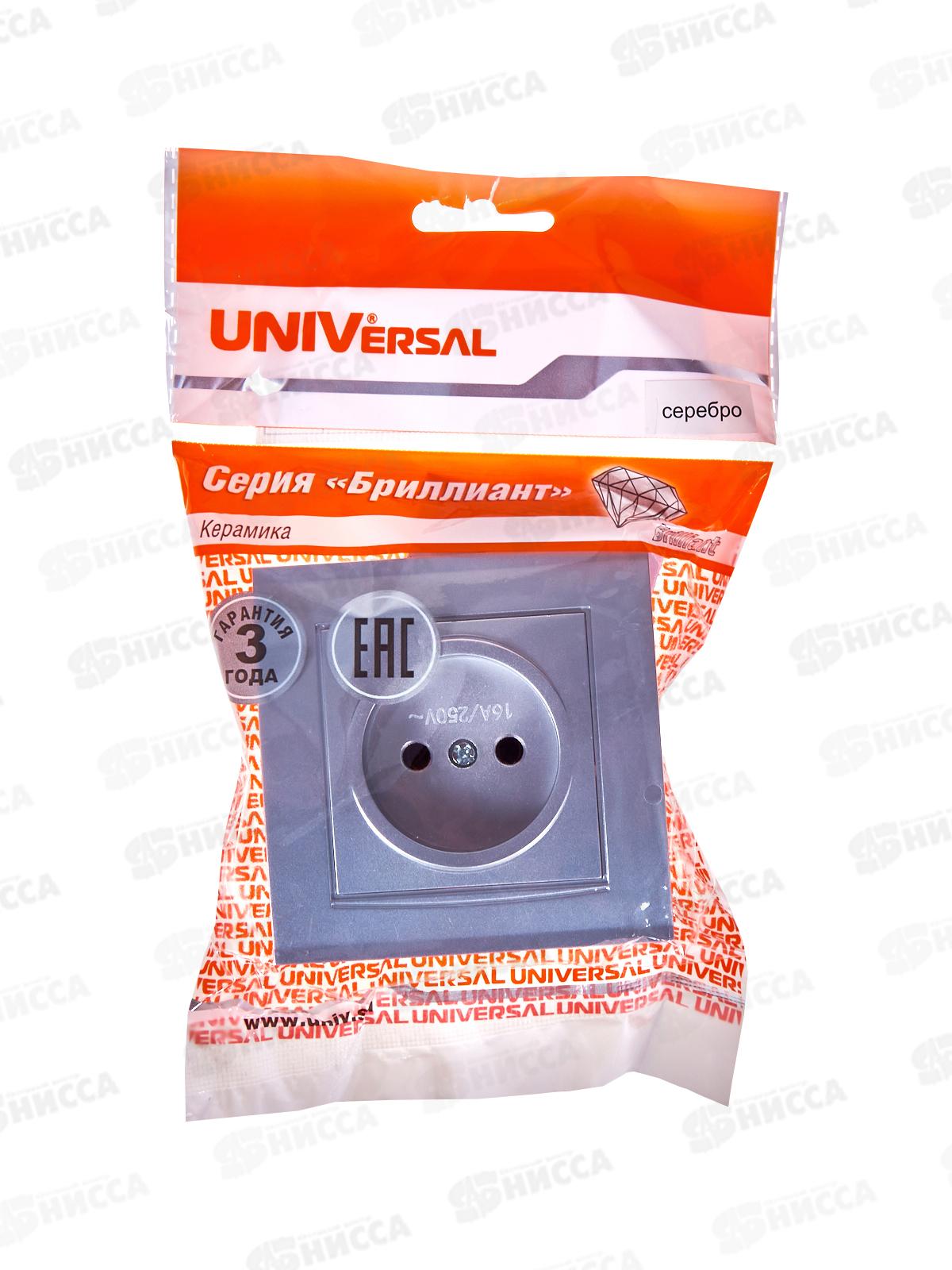 Розетка Бриллиант 1-местная без заземления, скрытая установка, 16А, 220В,серебро,керамика, 7949834*10