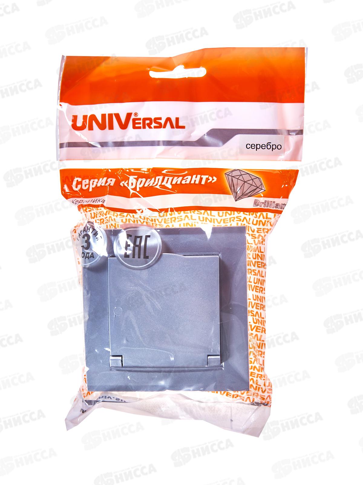 Розетка Бриллиант 1-местная с крышкой, с заземлением, скрытой установки,16А, 220В,серебро, 7949896*10