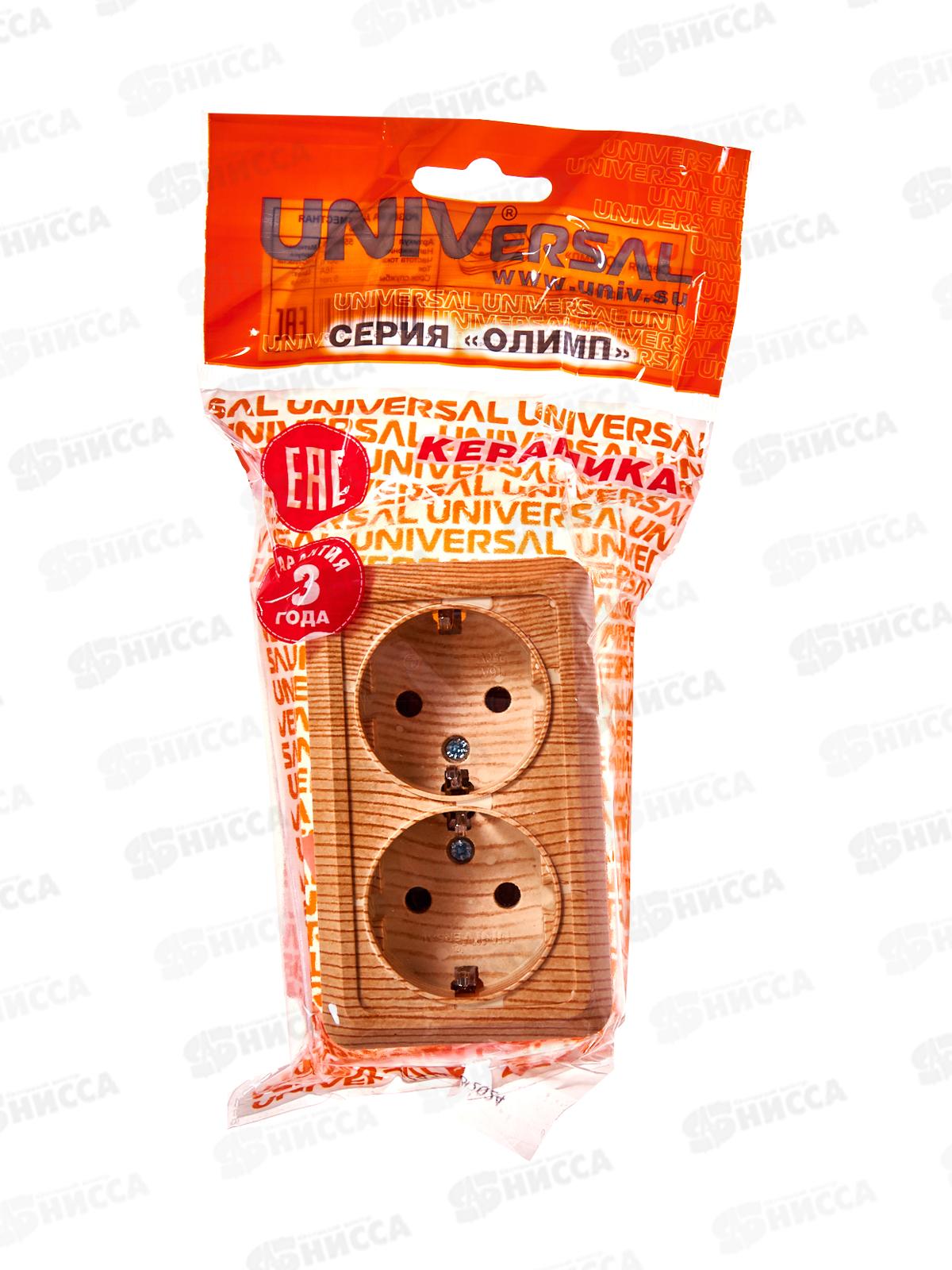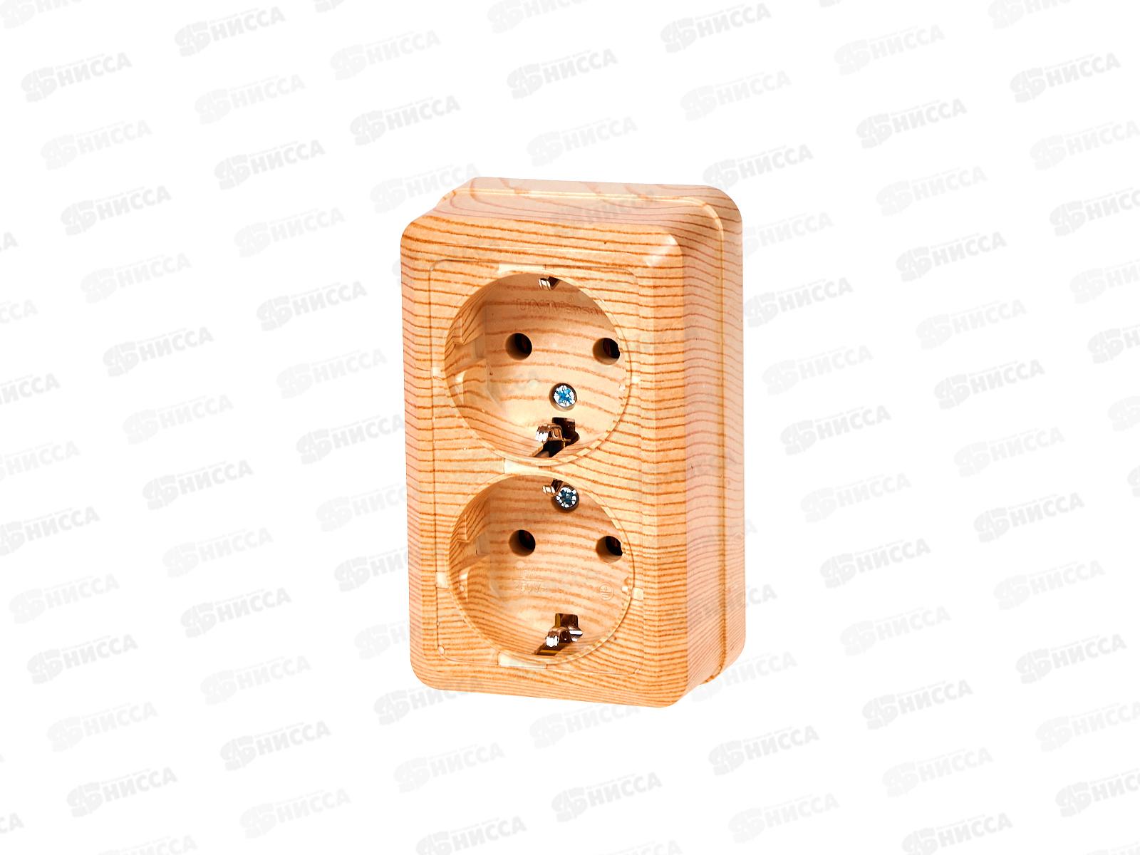 Розетка ОЛИМП 2-местная открытой установки, с заземлением, 16А, 220В сосна,керамика, 5560865*10