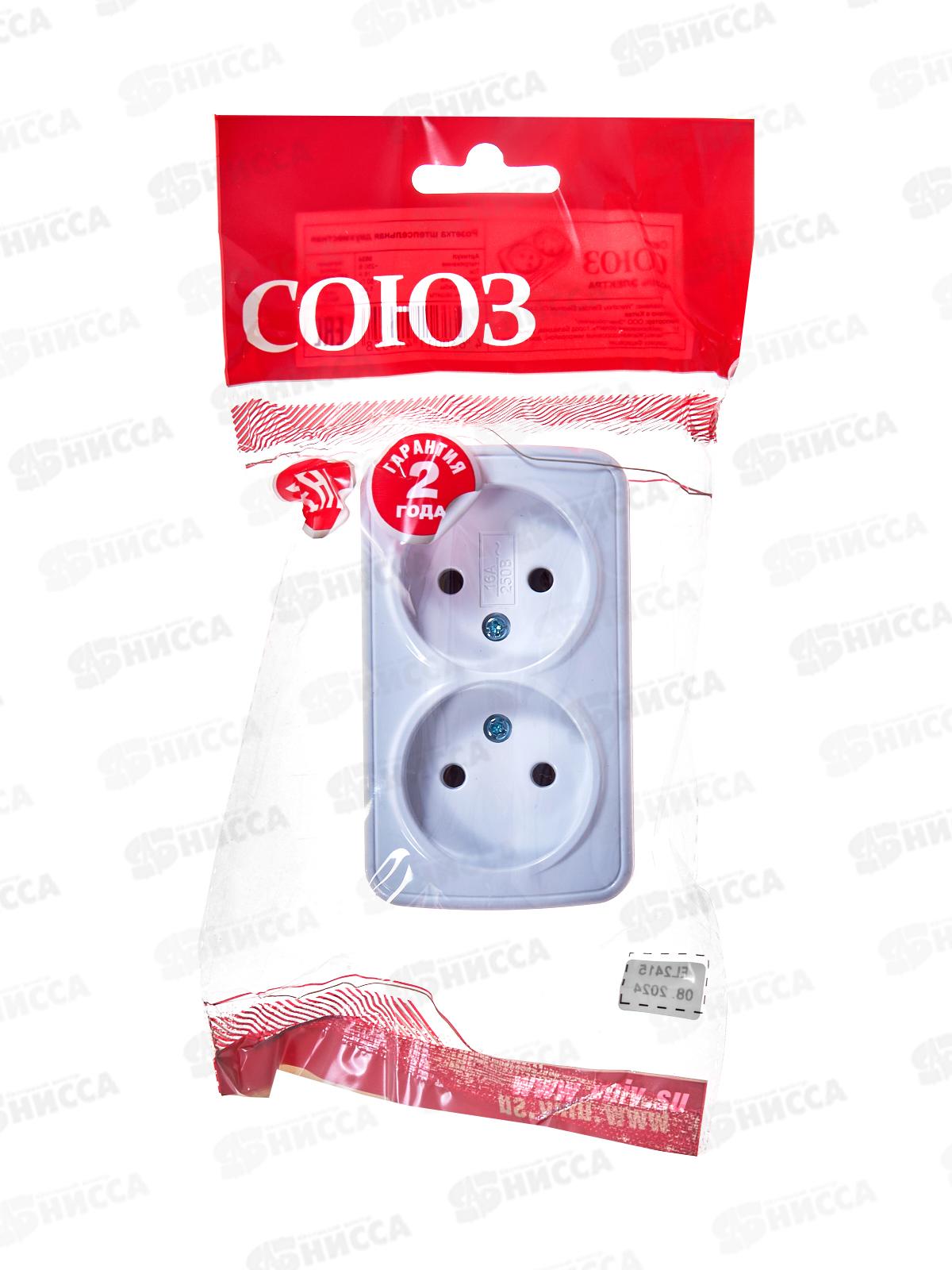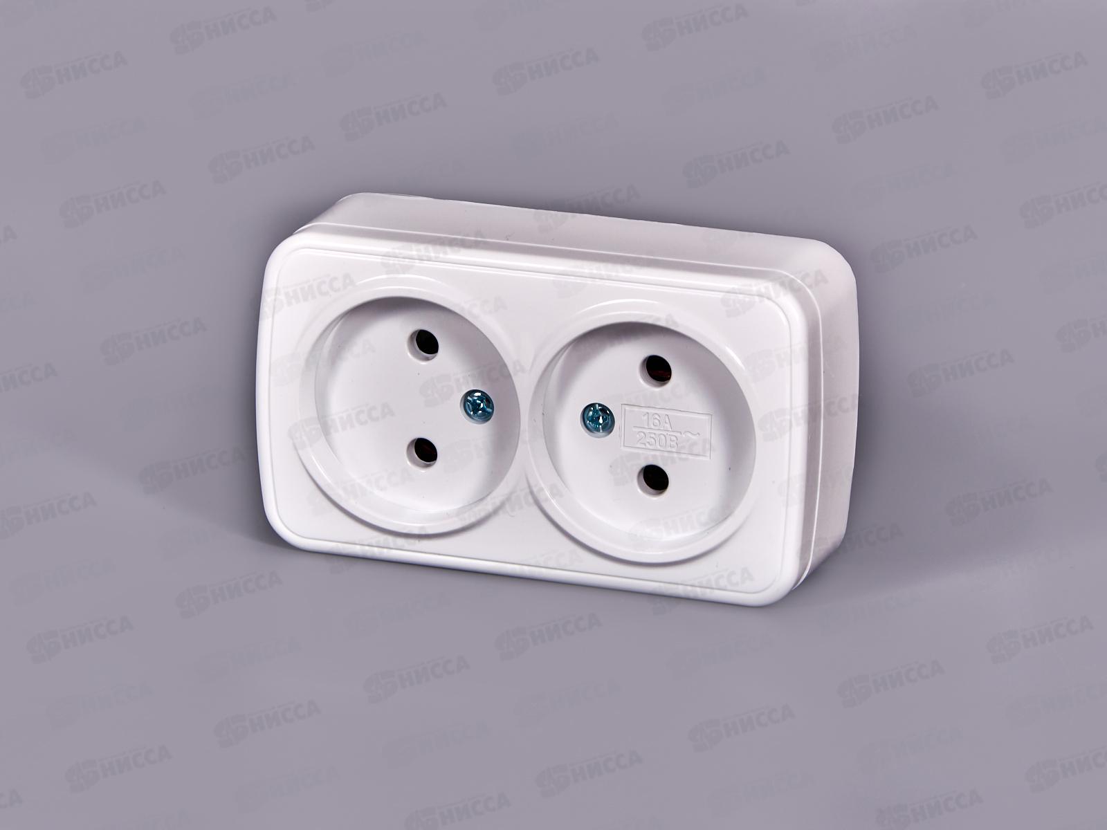 Розетка СОЮЗ 2-местная Электра, открытой установки, без заземления 16А, 220В, белая,0024*10