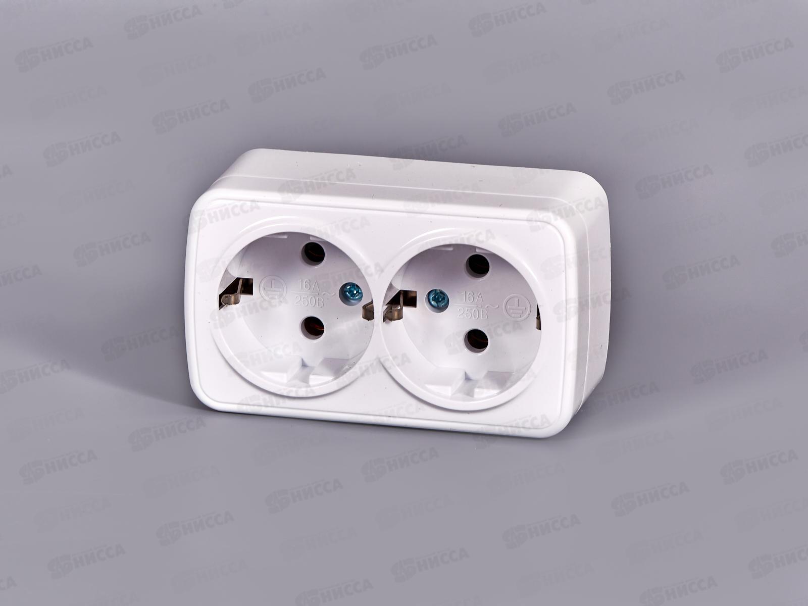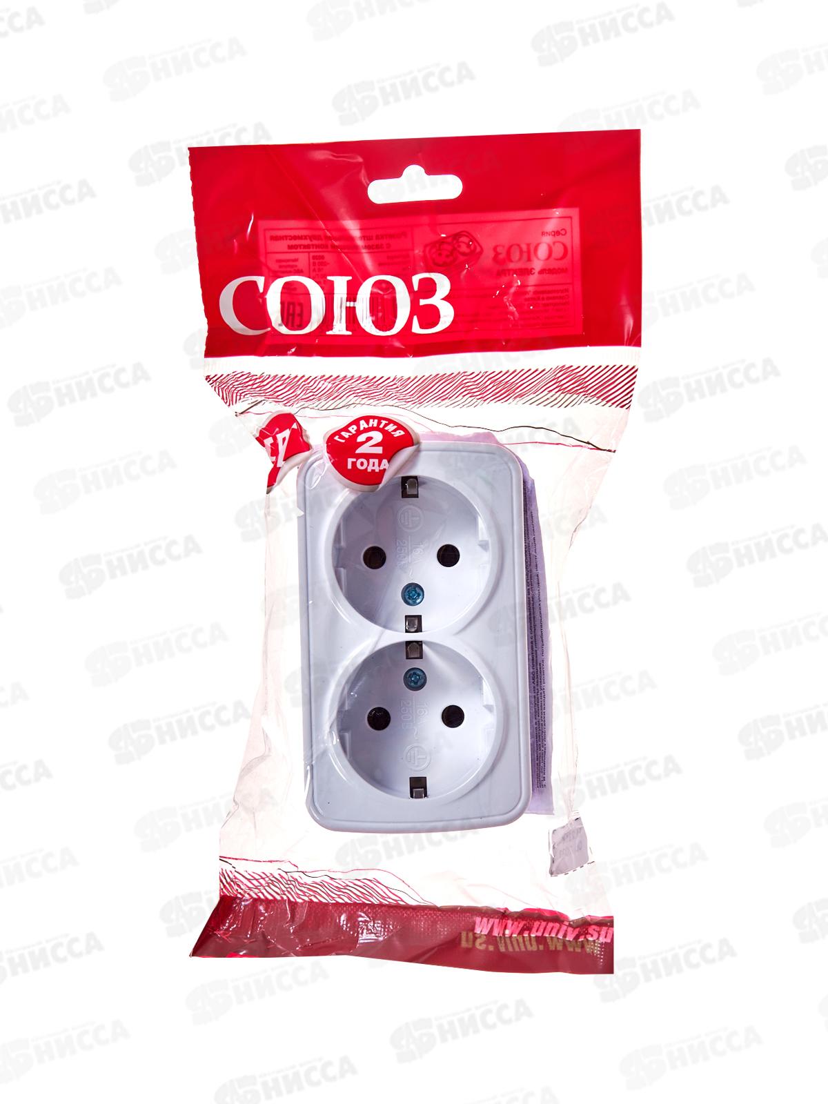 Розетка СОЮЗ 2-местная Электра, открытой установки, с/з 16А, 220В, белая,0020*10