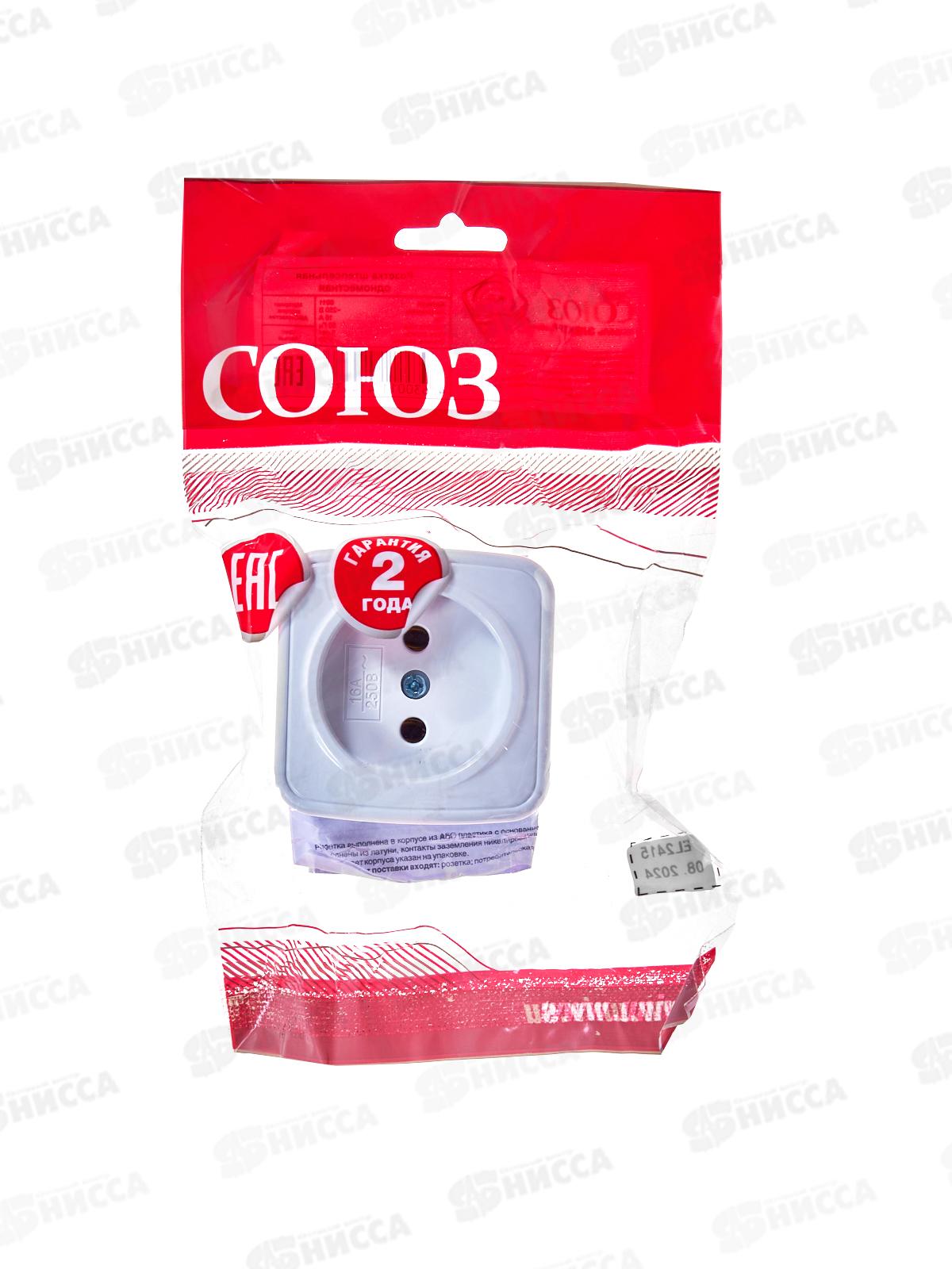 Розетка СОЮЗ 1-местная Электра, открытой установки, без заземления 16А, 220В, белая,0011*10