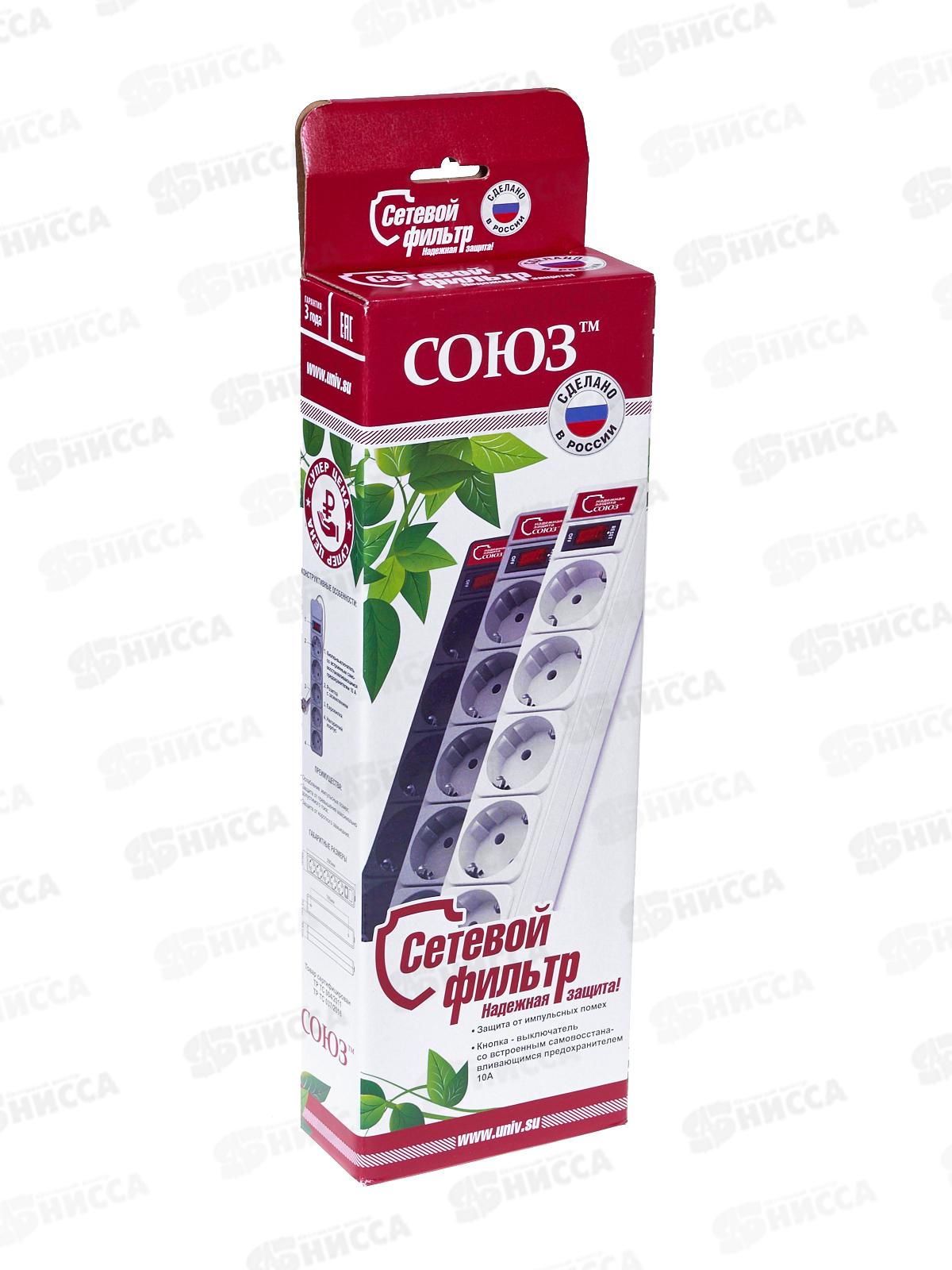 Сетевой фильтр СОЮЗ ПВС 3*0,75 5 гн, 1,5 м выкл. с индик. , с/з, серый
