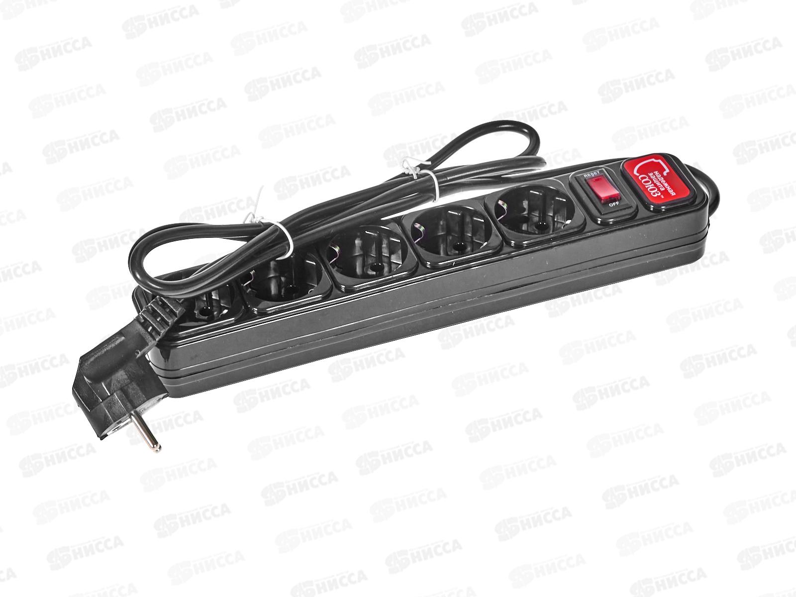 Сетевой фильтр СОЮЗ ПВС 3*0,75 5 гнезд, 1,5 м выключатель с идикатором, с/з, з/ш,черный,1335