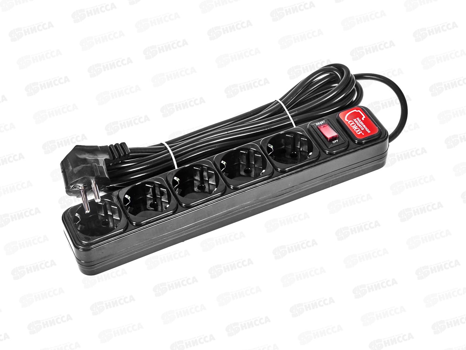 Сетевой фильтр СОЮЗ ПВС 3*0,75 5 гнезд, 5 м выключатель с идикатором, с/з, з/ш,черн