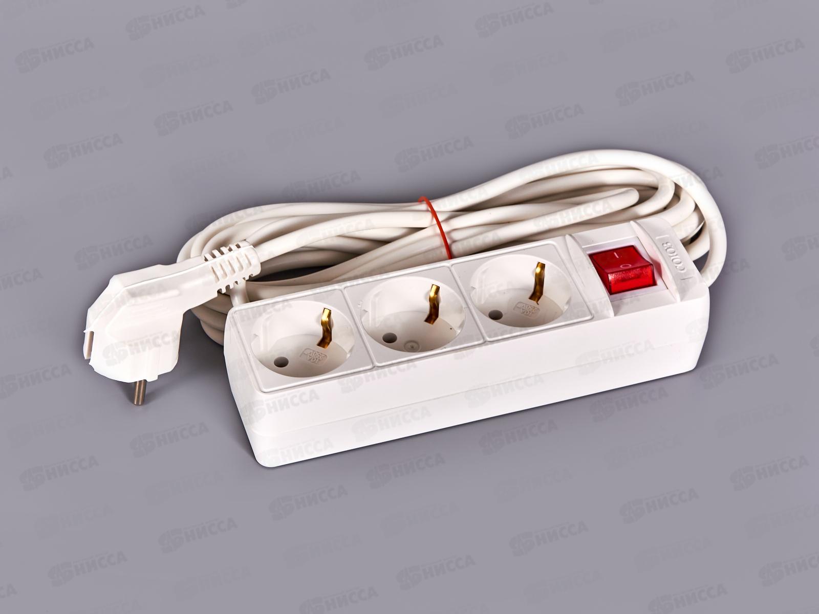 Удлинитель бытово СОЮЗ 2200ВТ 3 гнезда. ПВС , с/pз, выкл, 5 м, 481S-7305