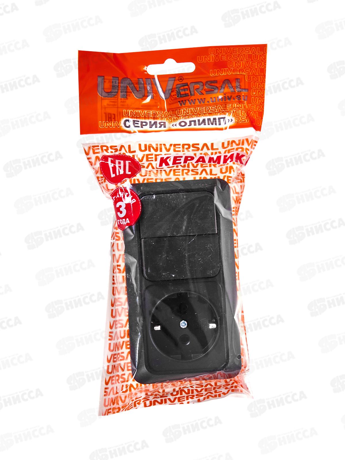 Блок горизонтальный ОЛИМП выключатель 2-клавиши, открытая установка + роз 1-мес., с/з,черный 7946810*10