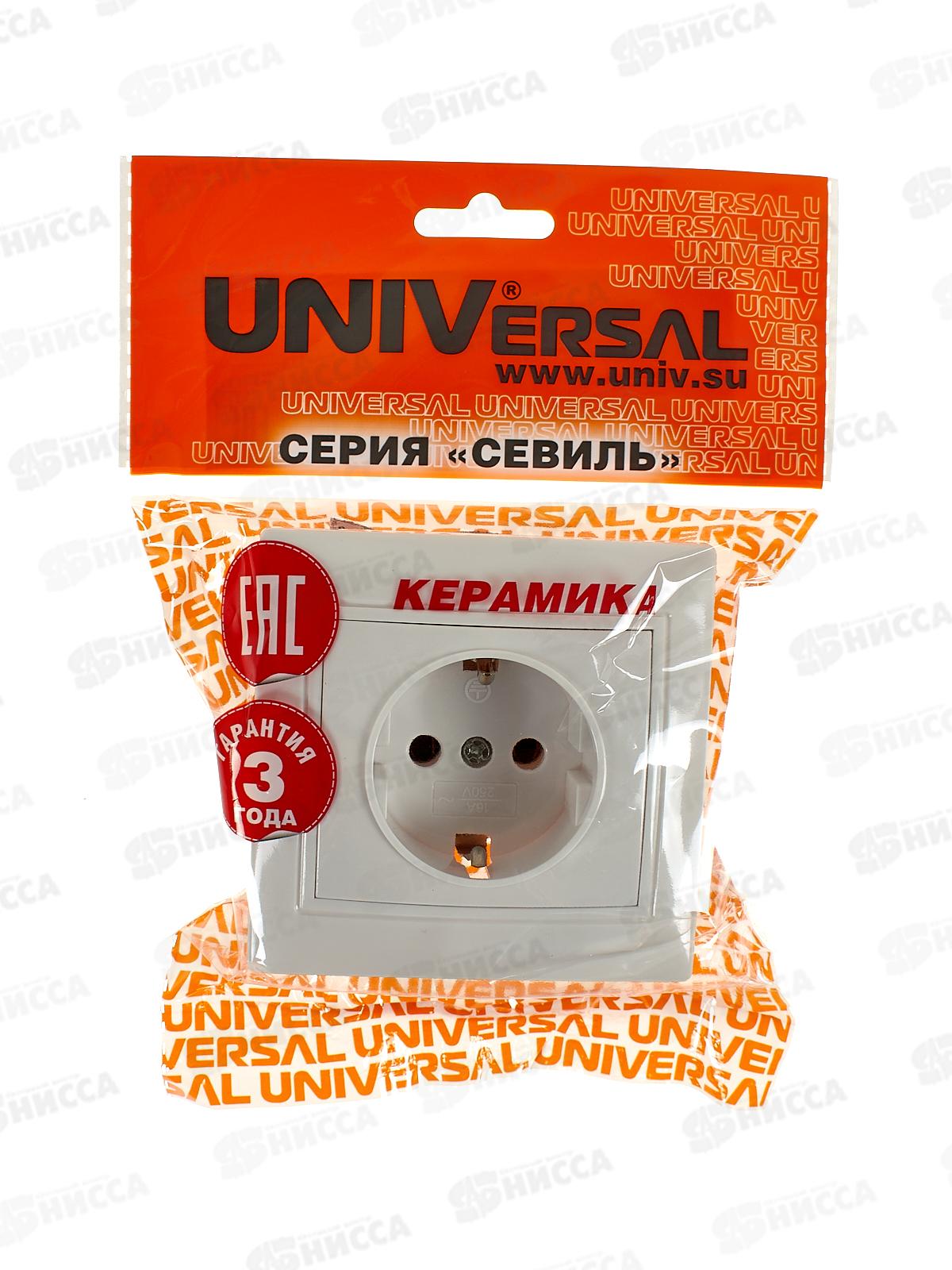 Розетка Севиль 1-местная скрытой установки, с заземлением,16А, 220В белая С0028*10